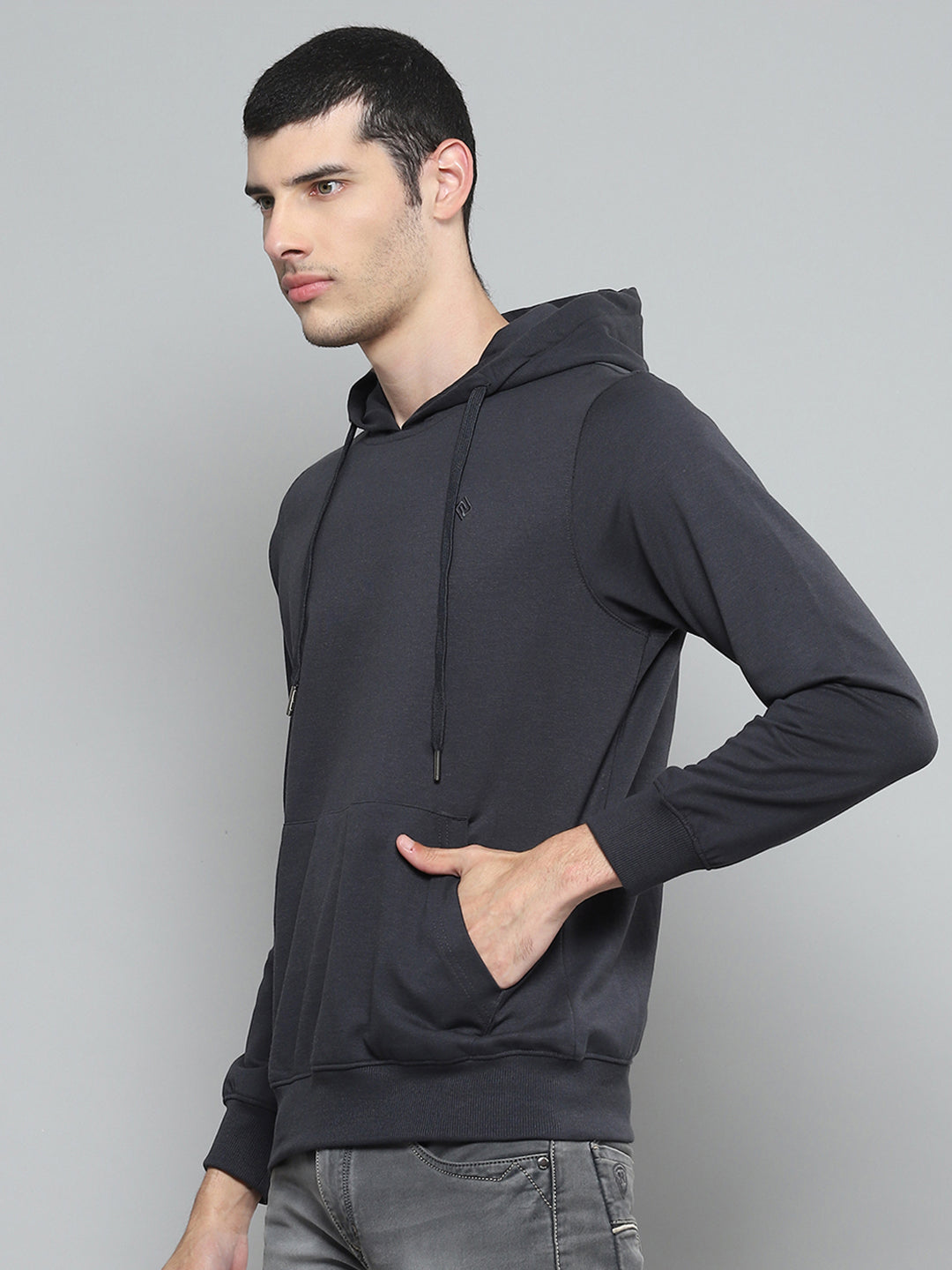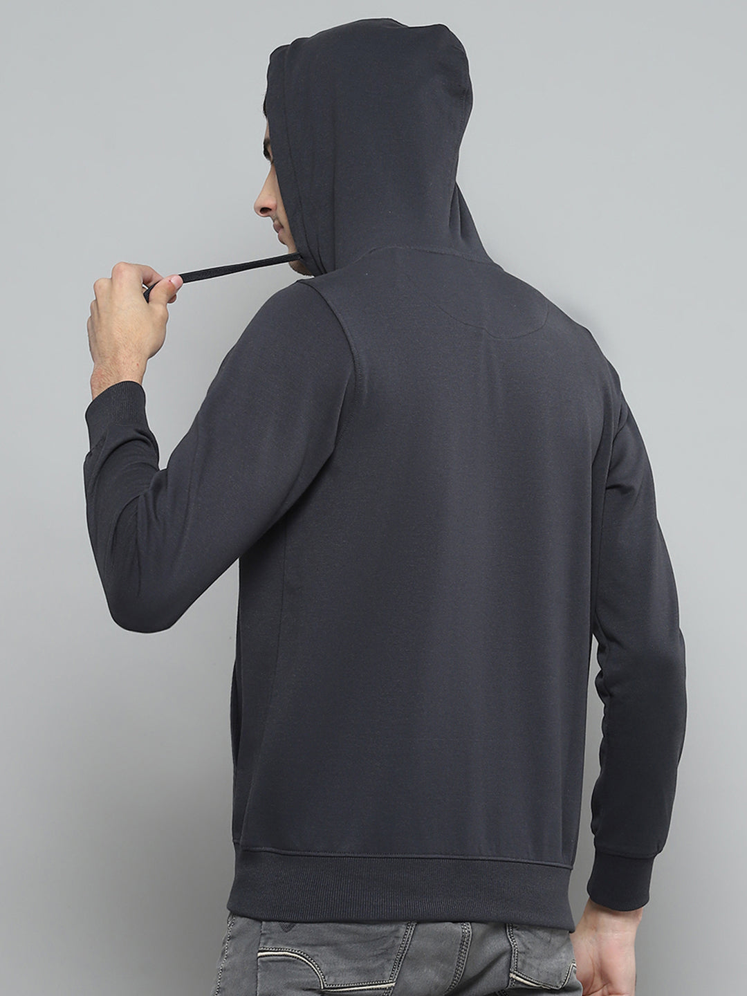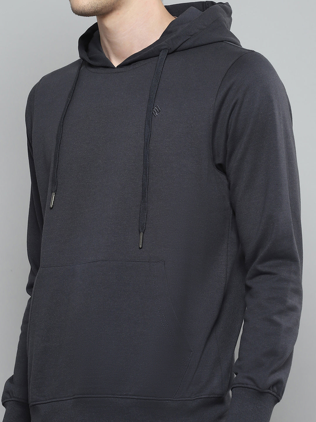 Men Charcoal Solid Hooded Full Sleeve Sweatshirt