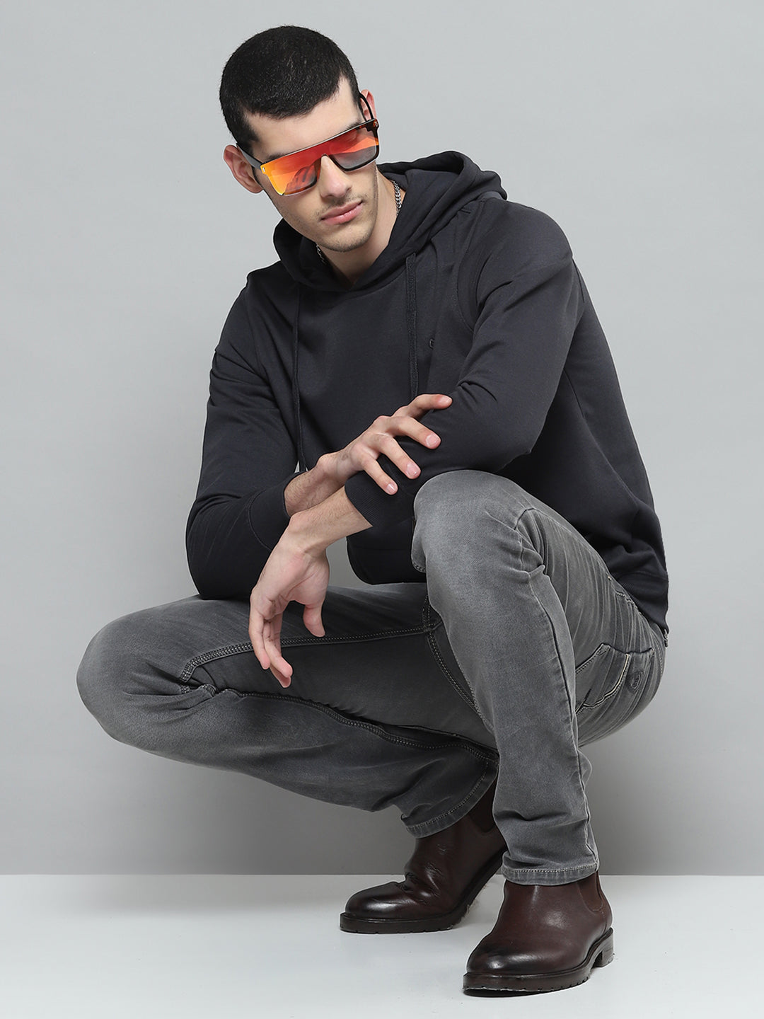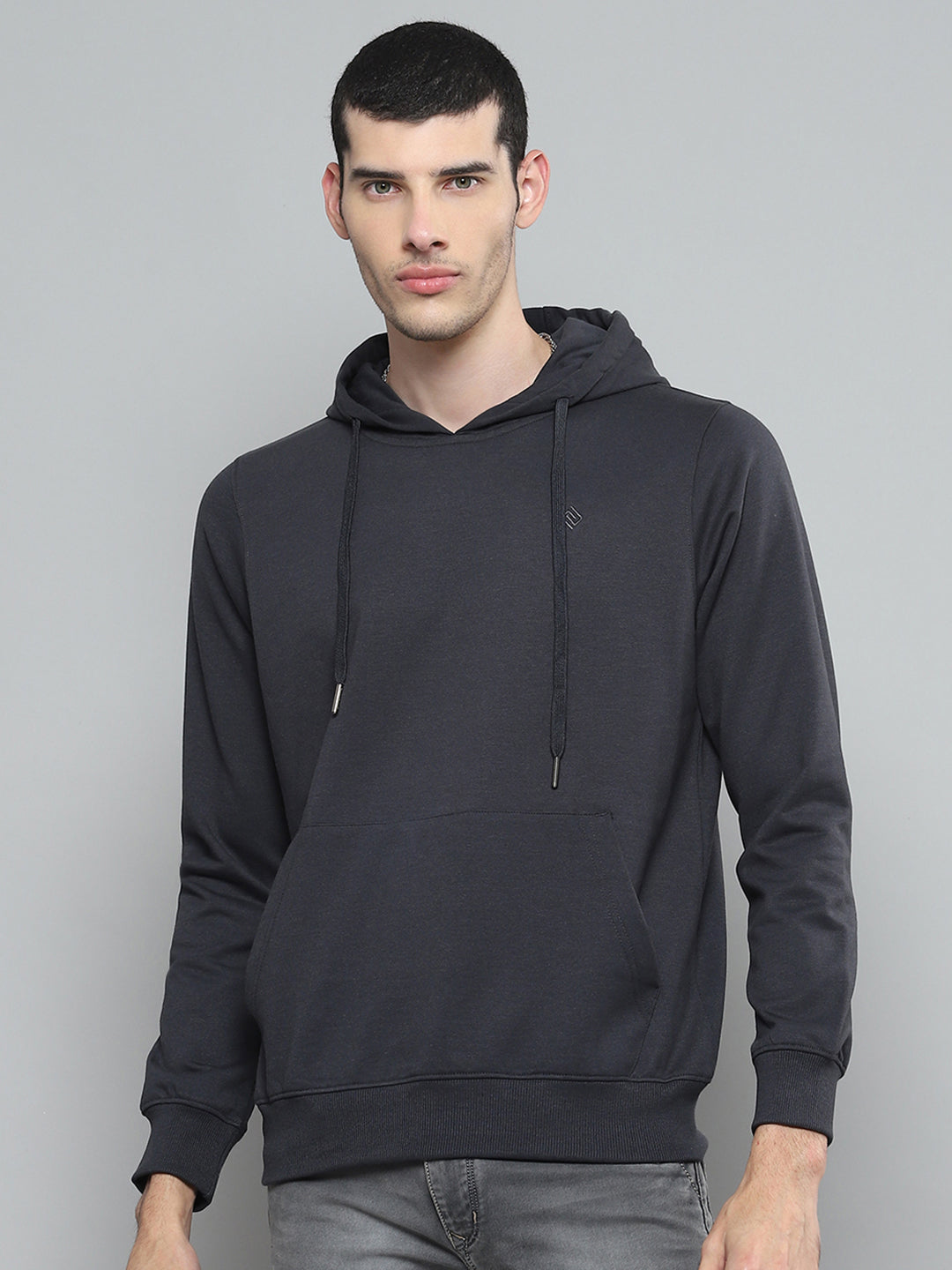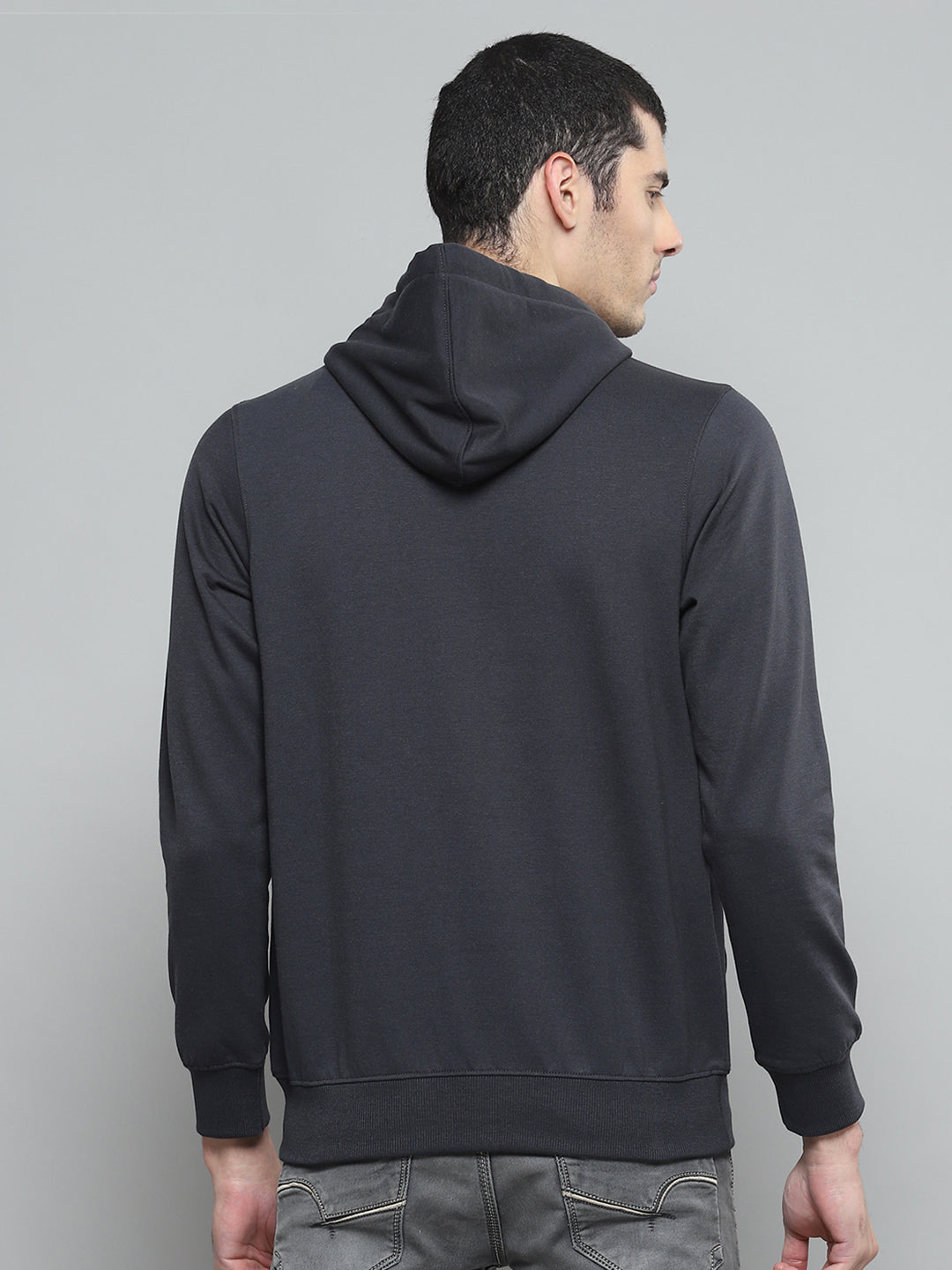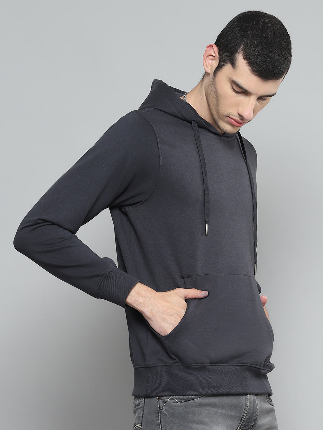 Men Charcoal Solid Hooded Full Sleeve Sweatshirt
