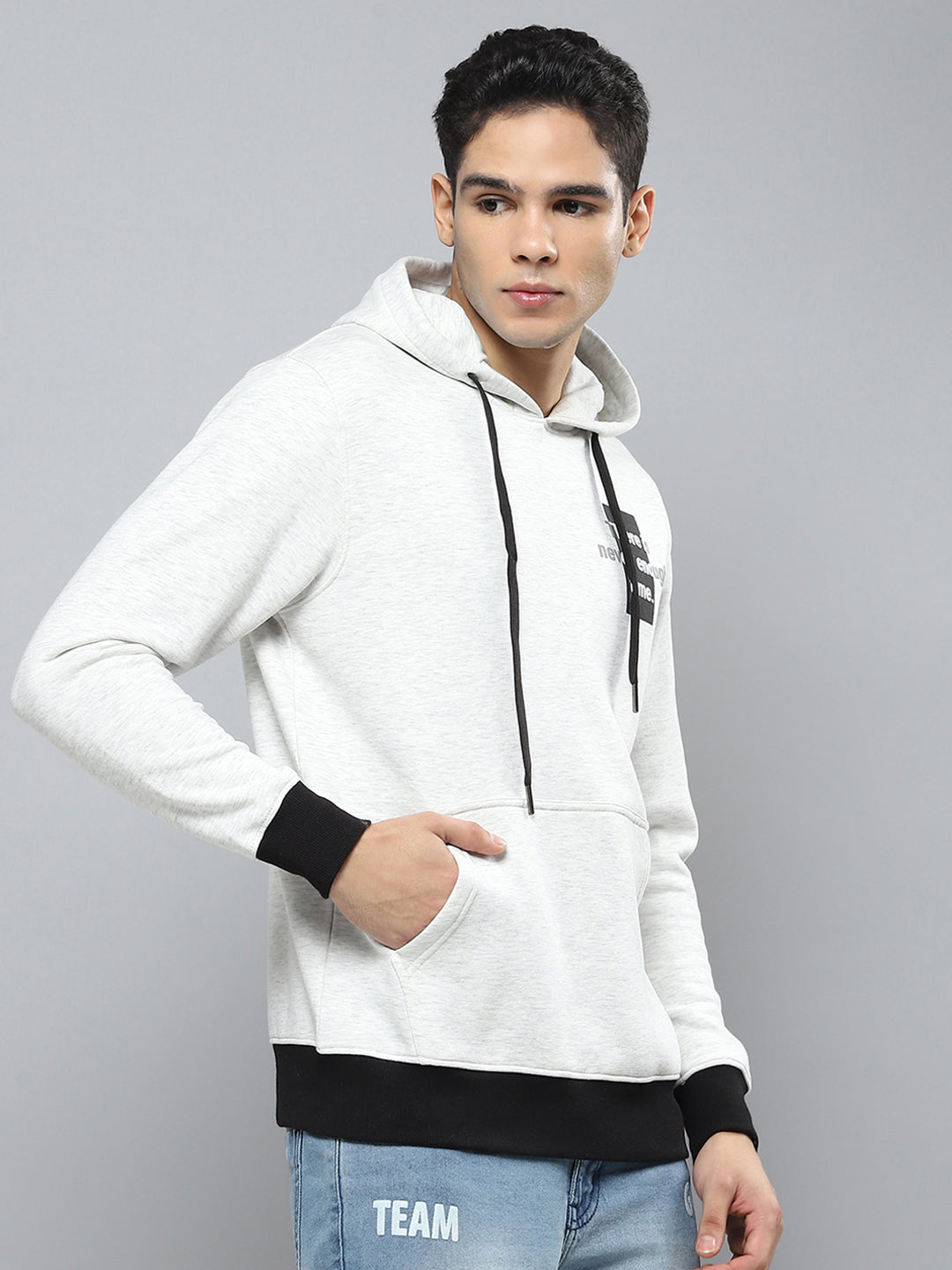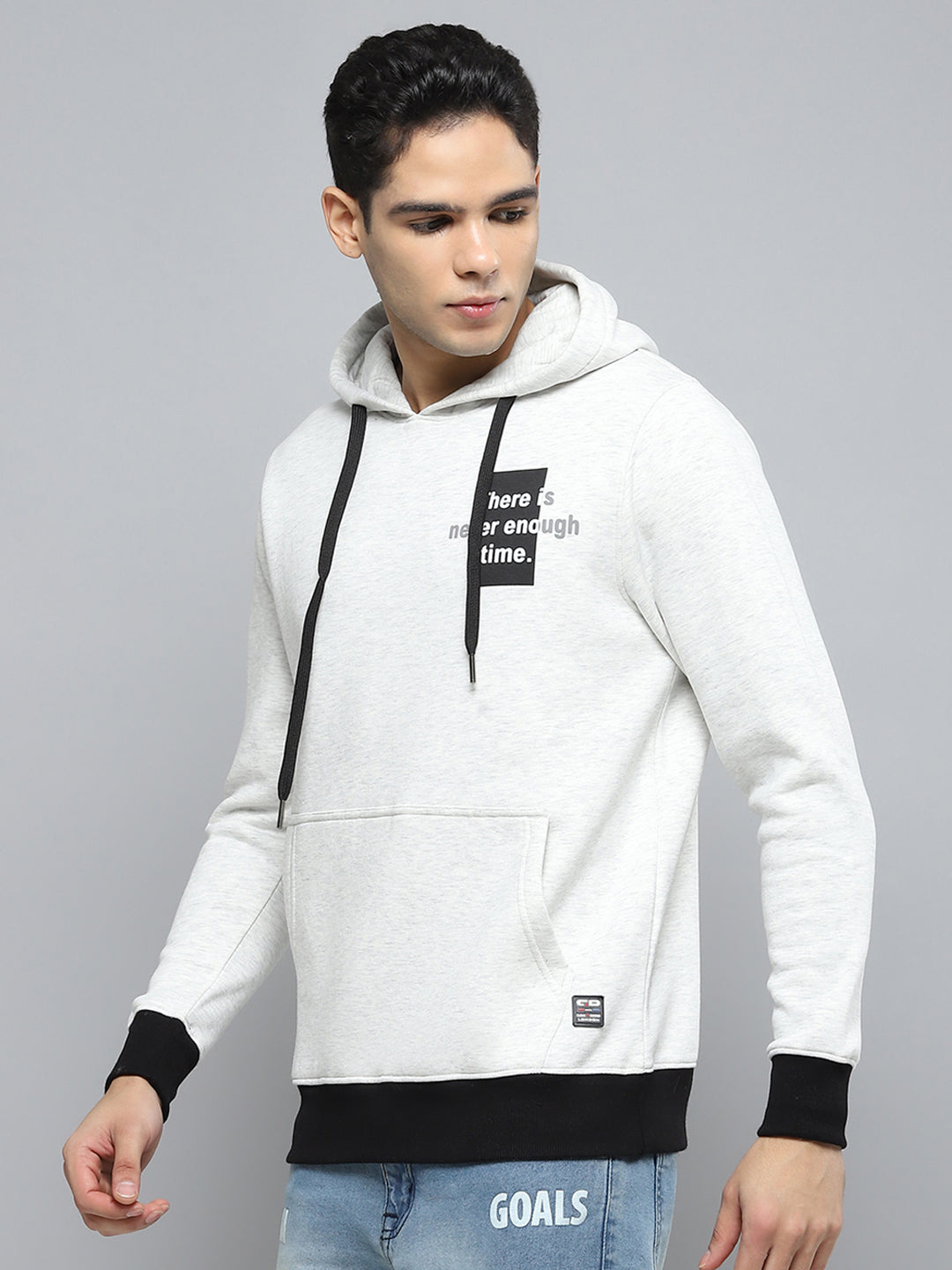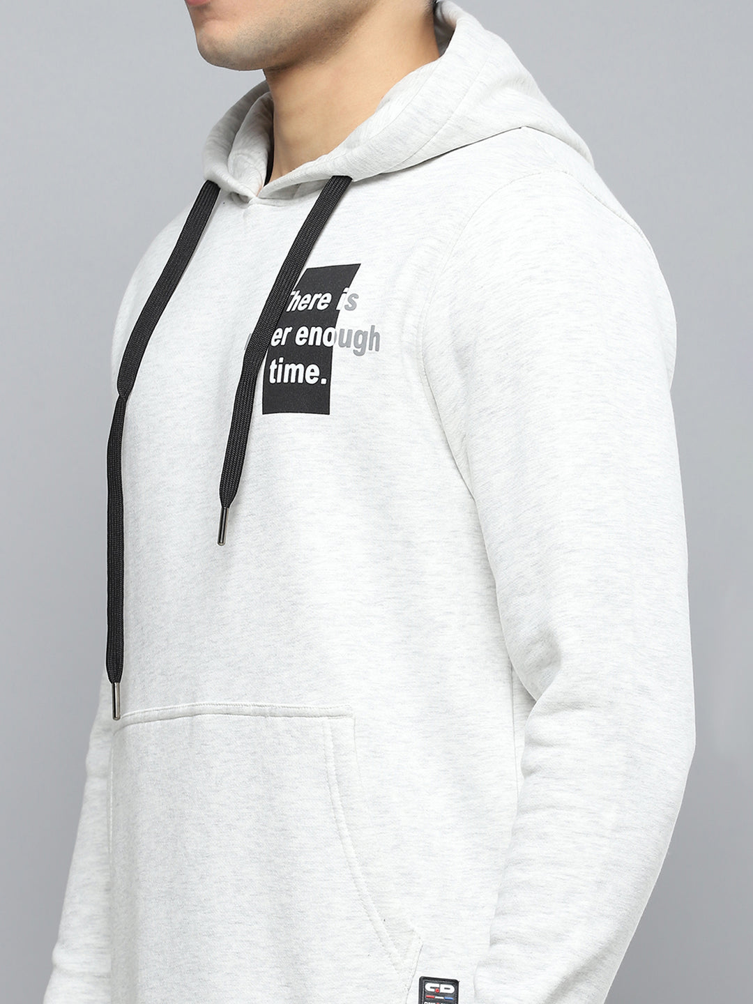 Men Grey Printed Hooded Full Sleeve Sweatshirt