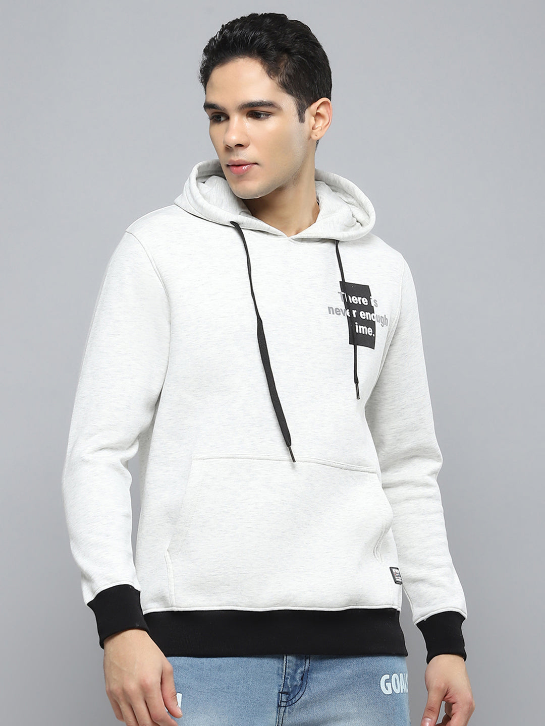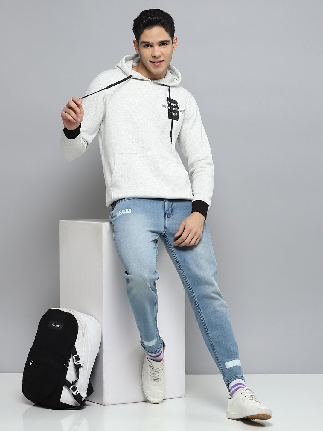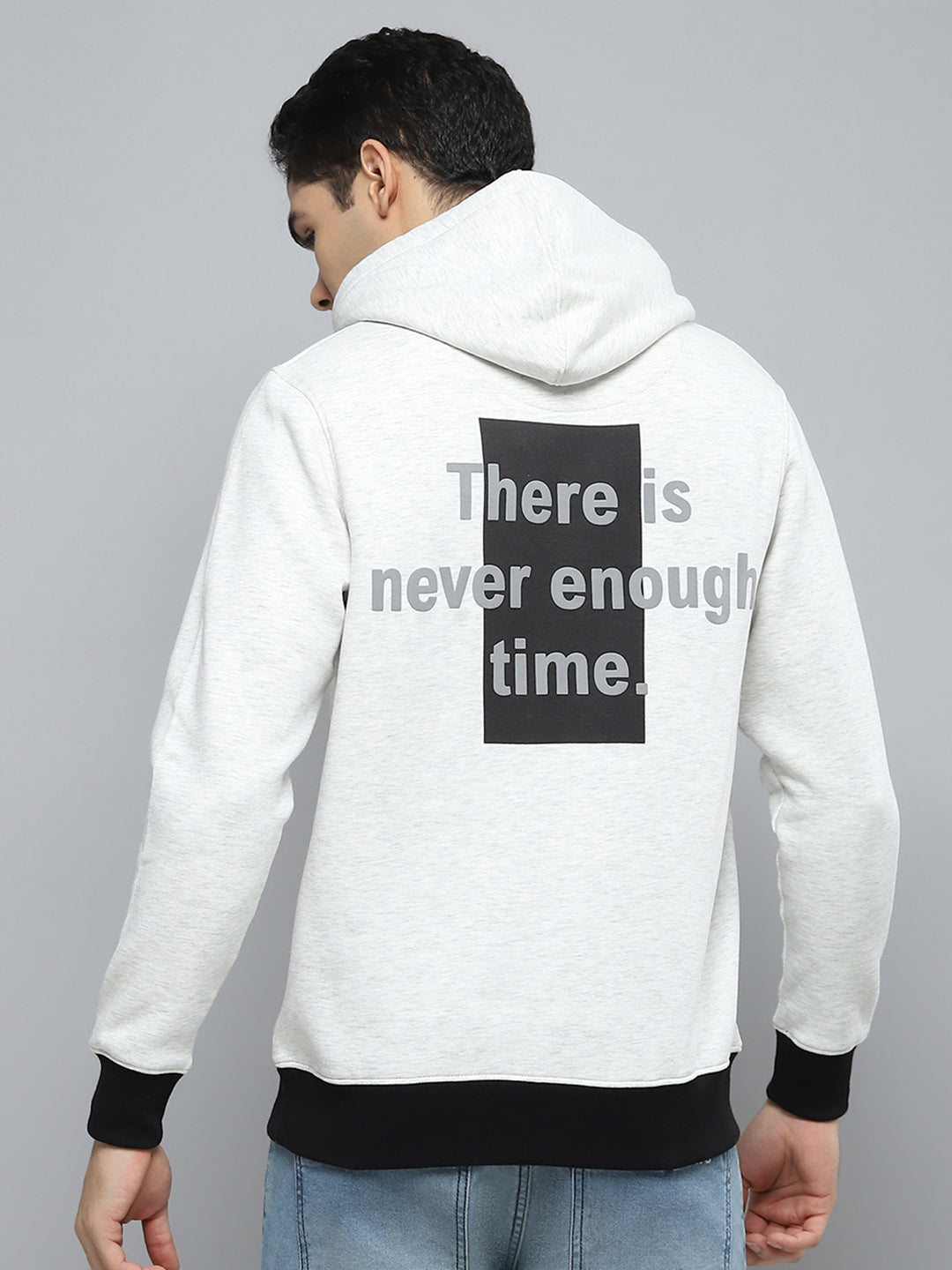 Men Grey Printed Hooded Full Sleeve Sweatshirt