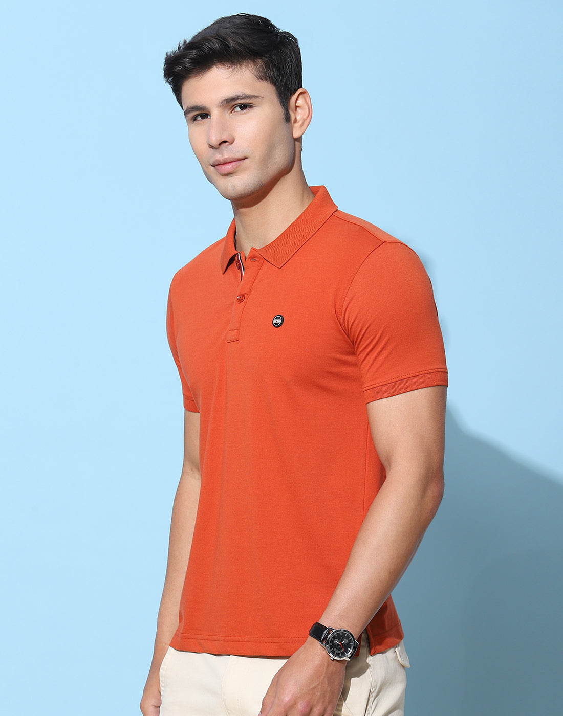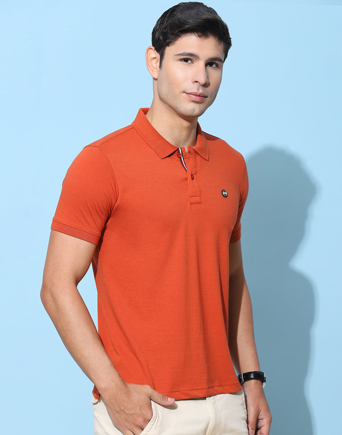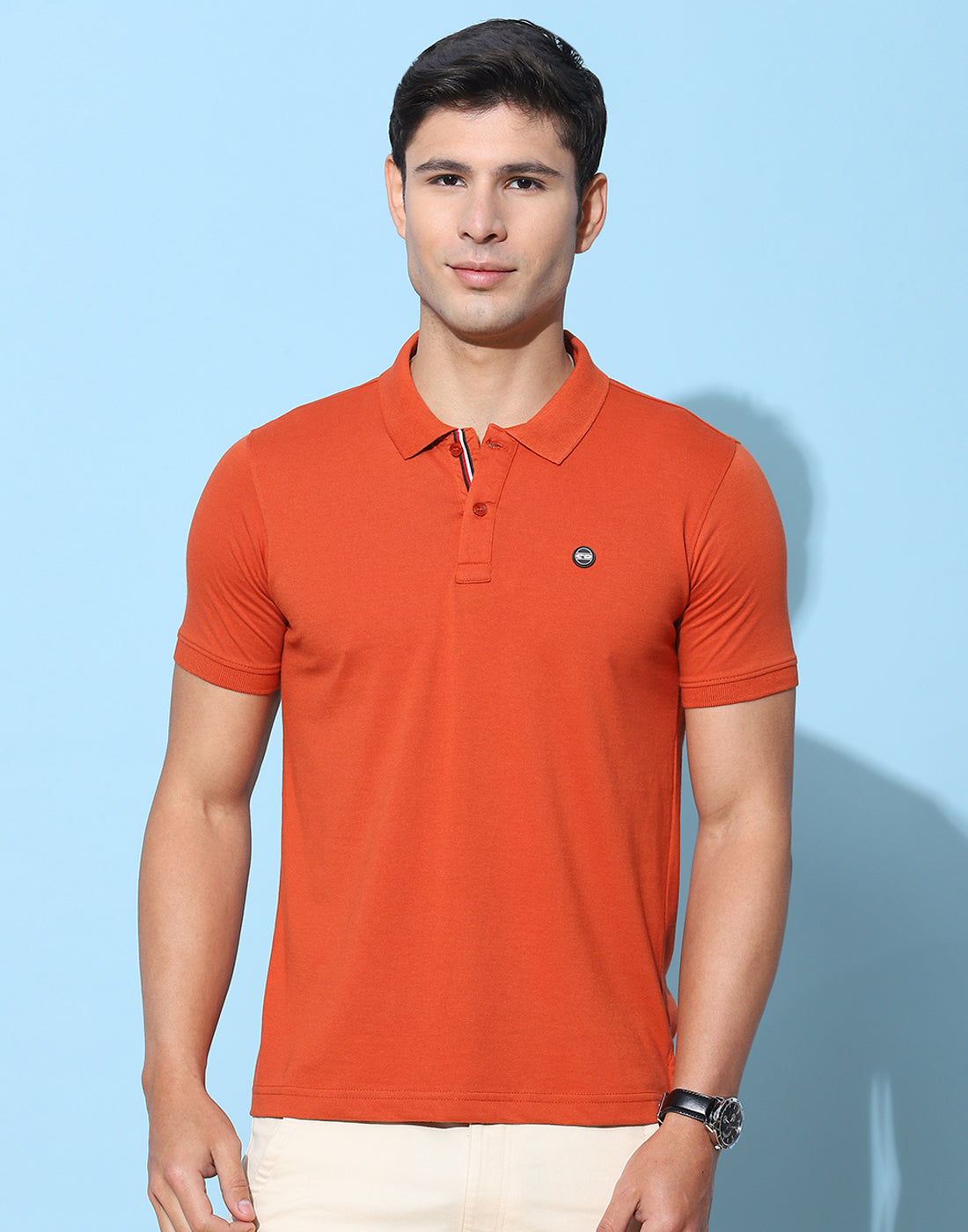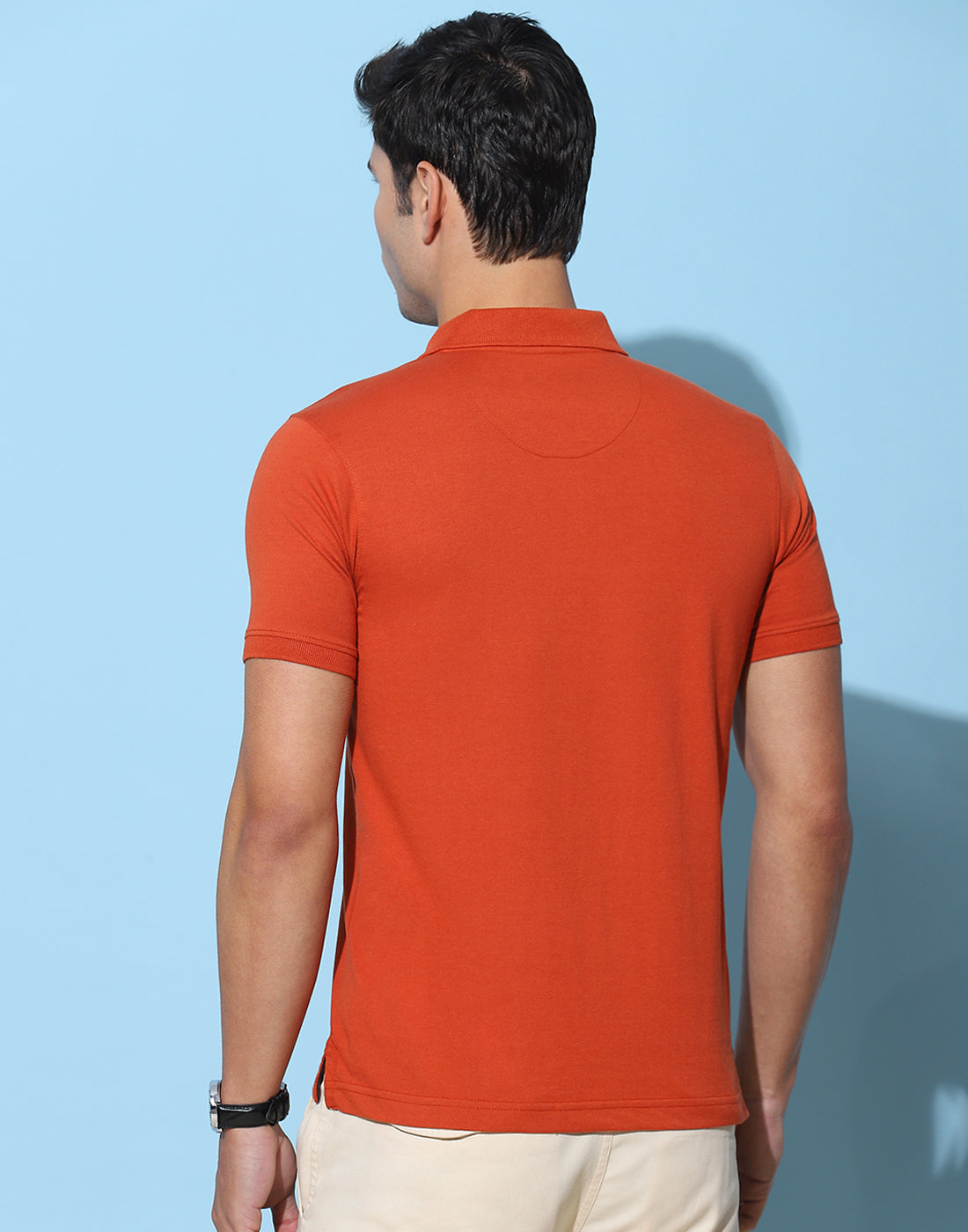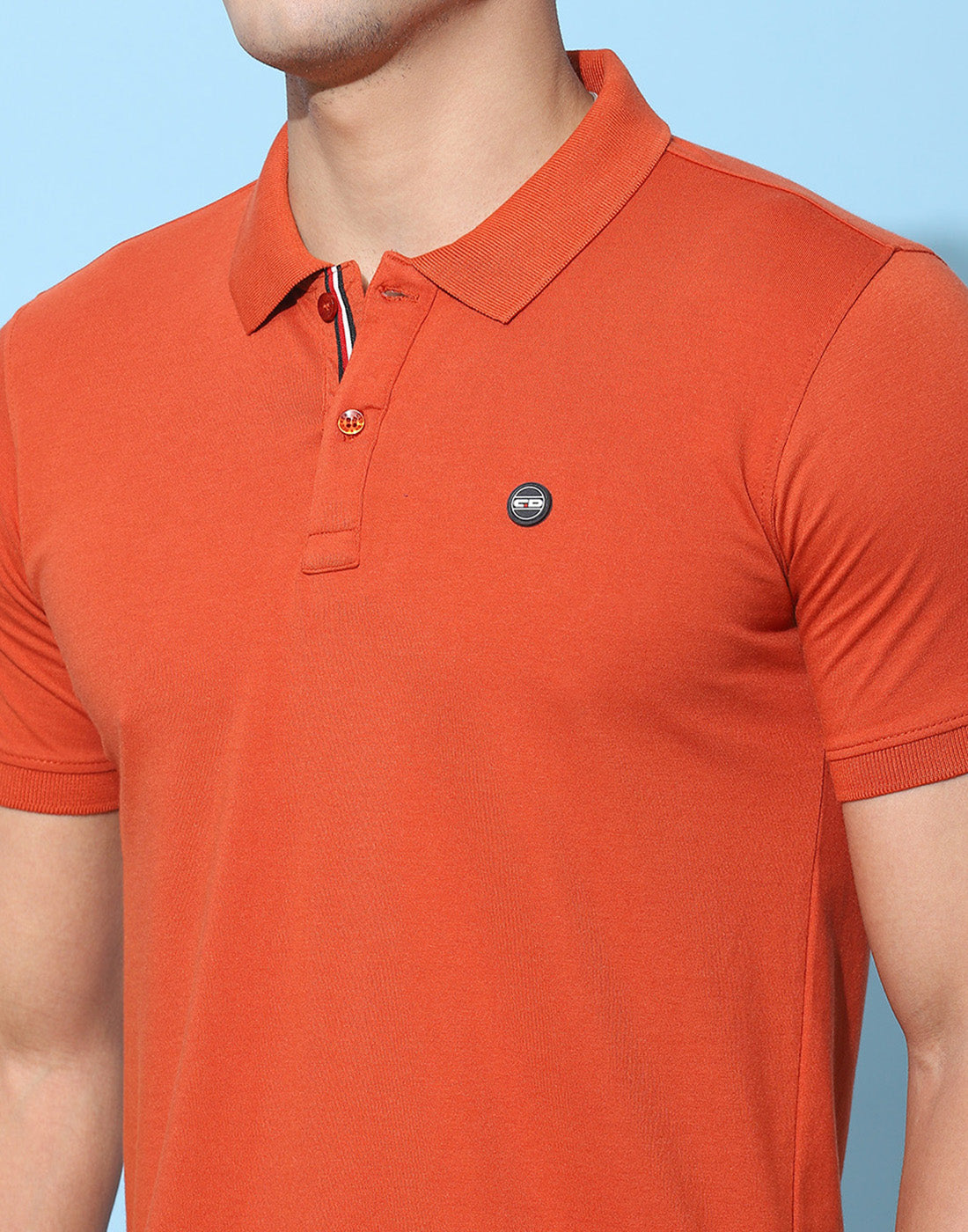 Men Rust Solid Collar Half Sleeve T-Shirt