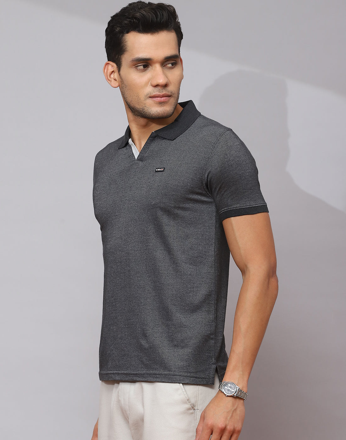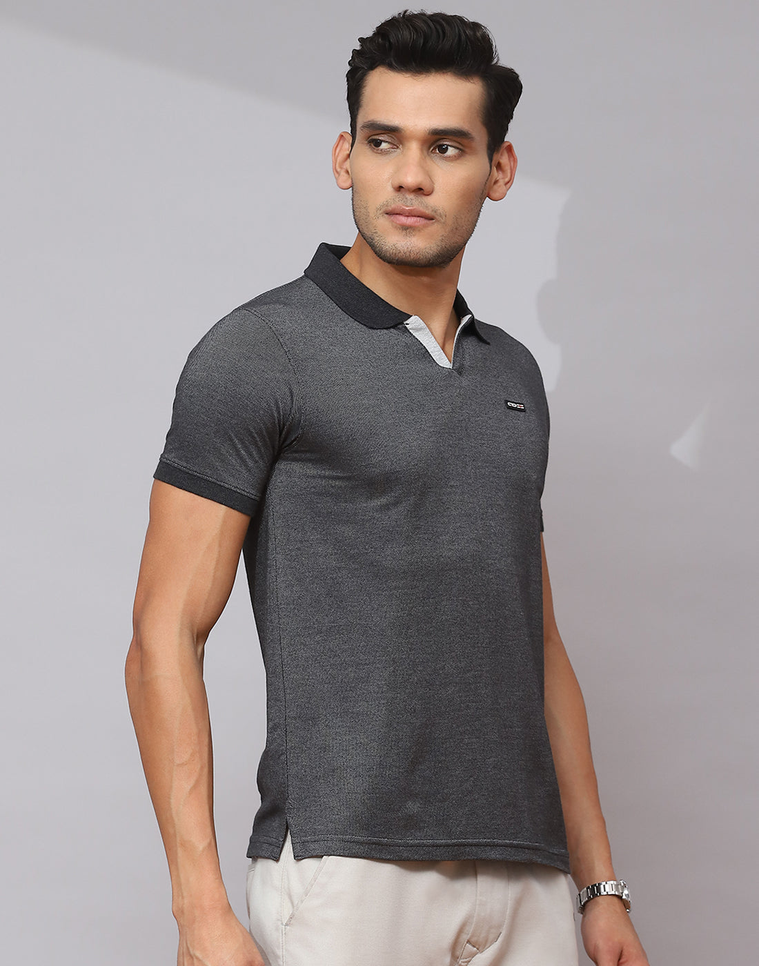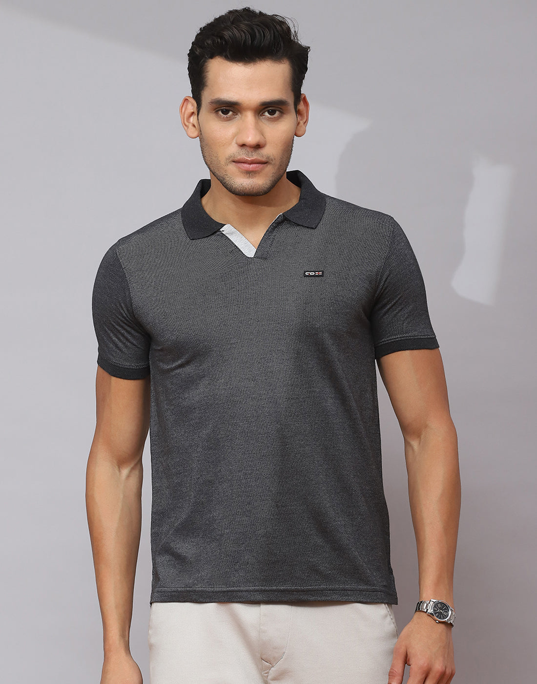 Men Grey Solid Collar Half Sleeve T-Shirt