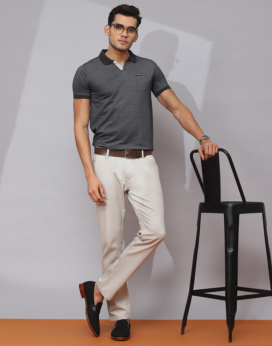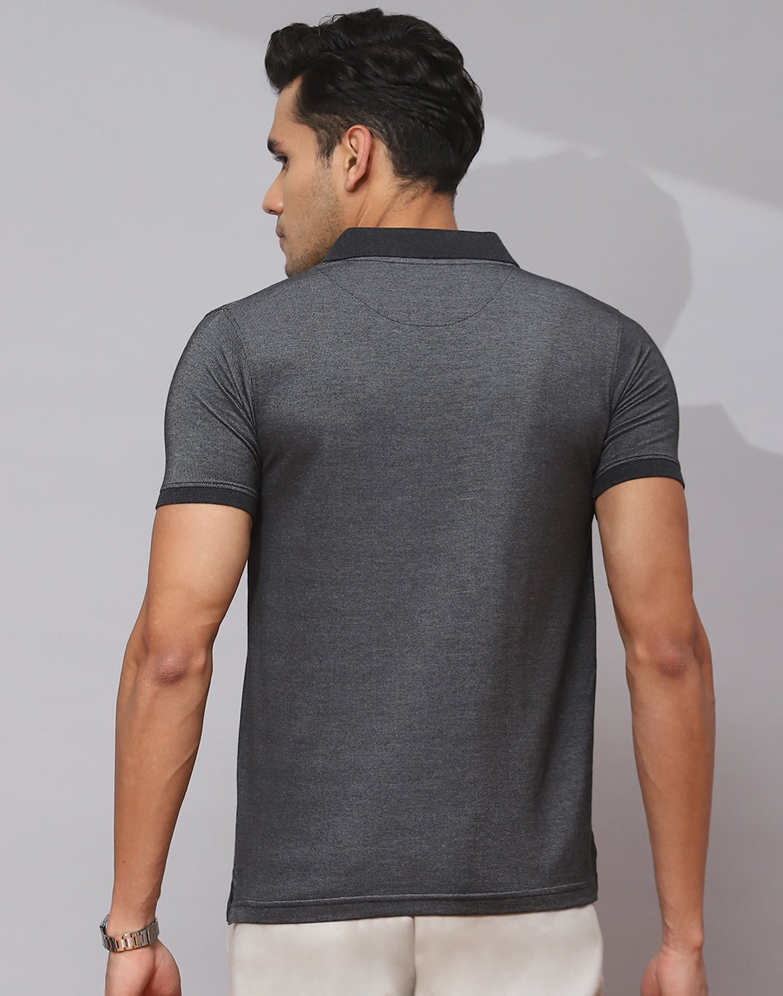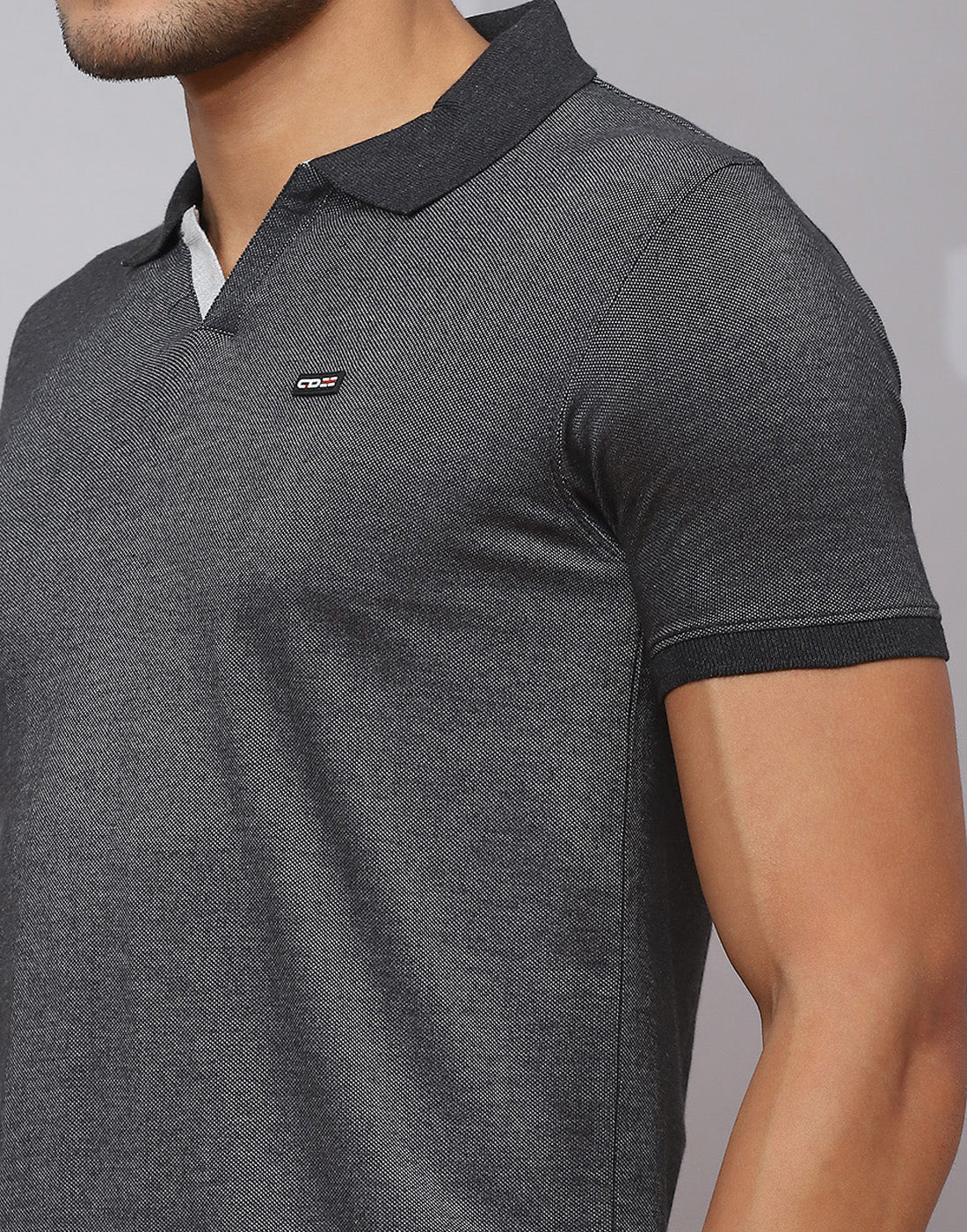 Men Grey Solid Collar Half Sleeve T-Shirt