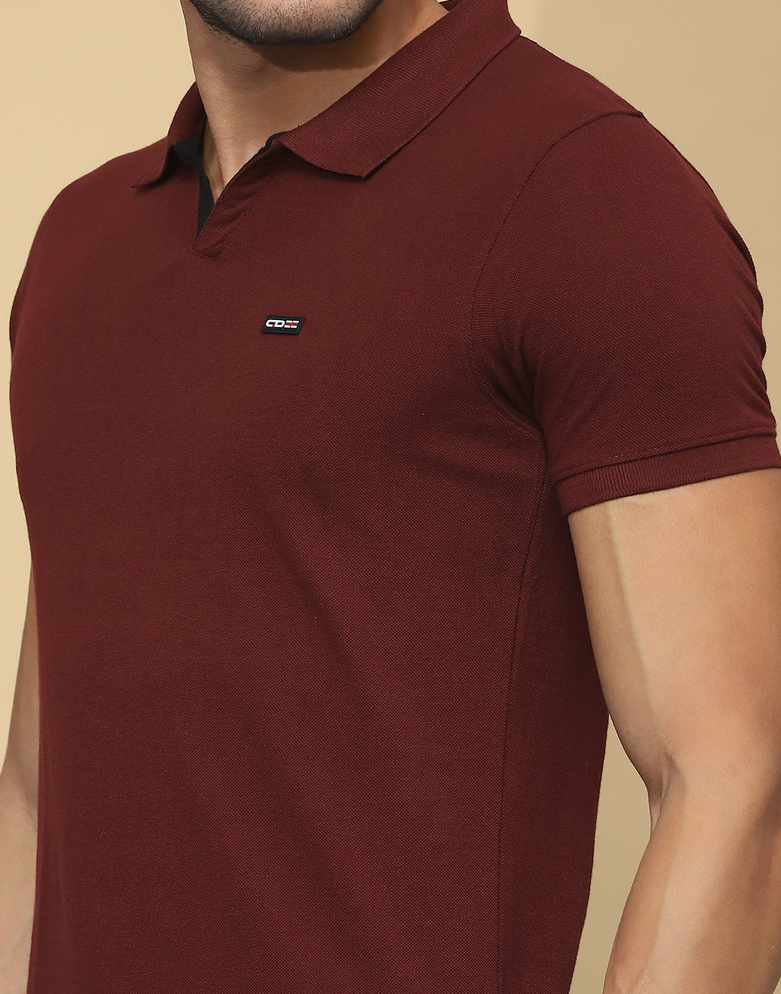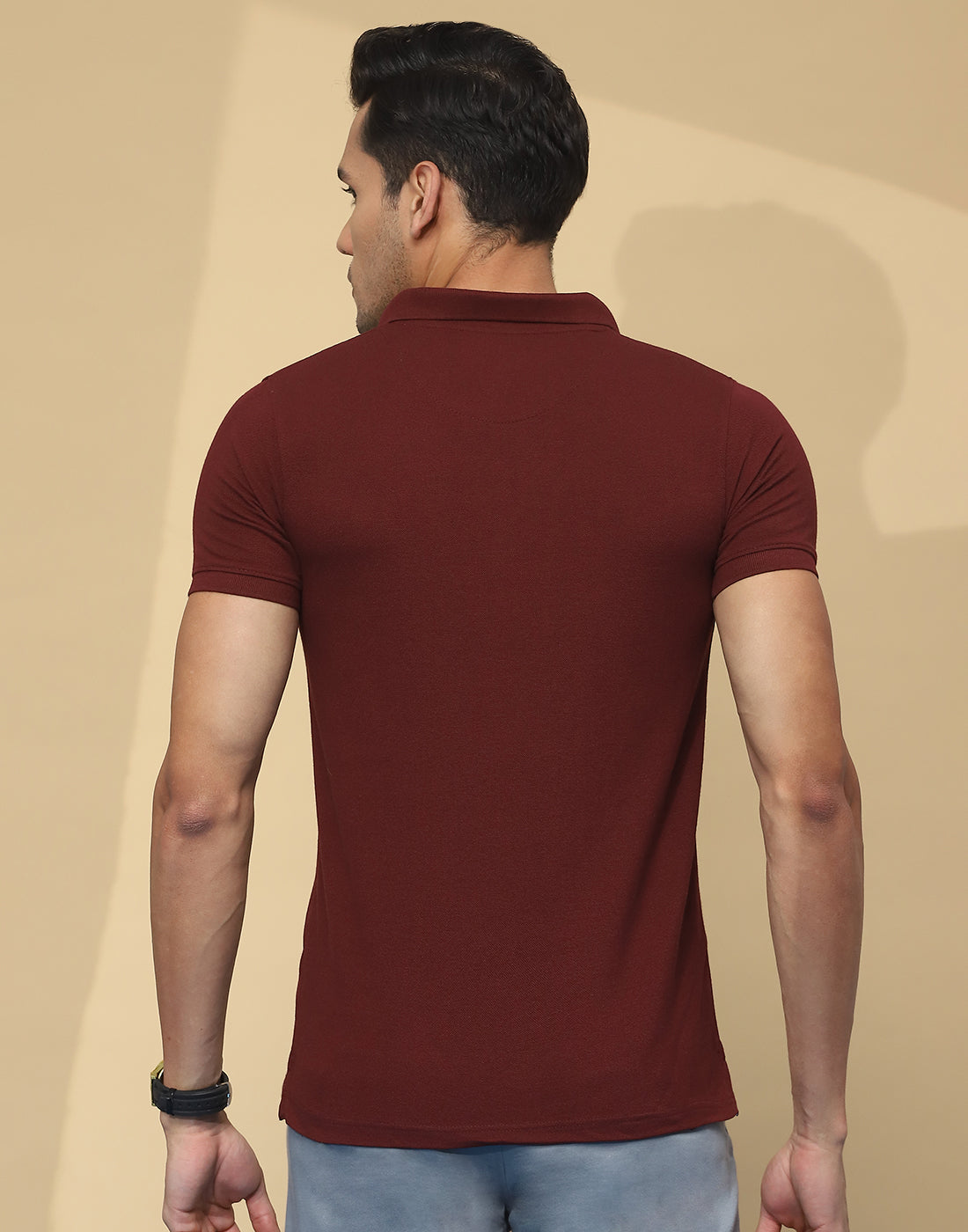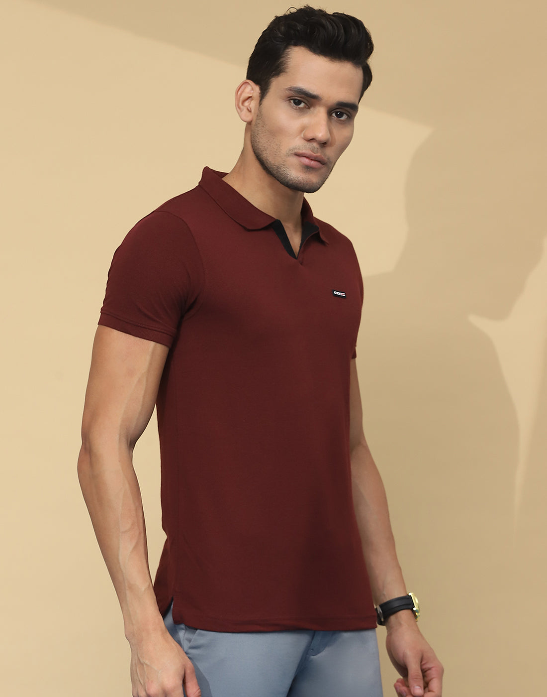 Men Maroon Solid Collar Half Sleeve T-Shirt