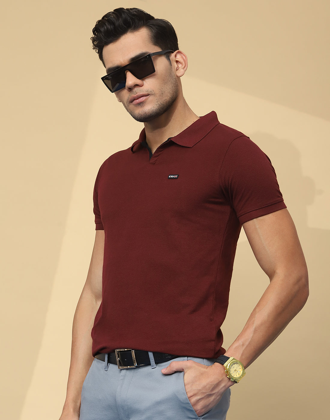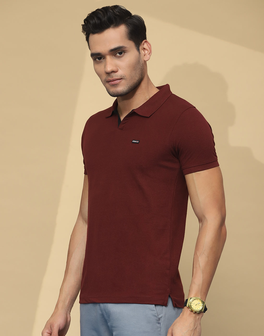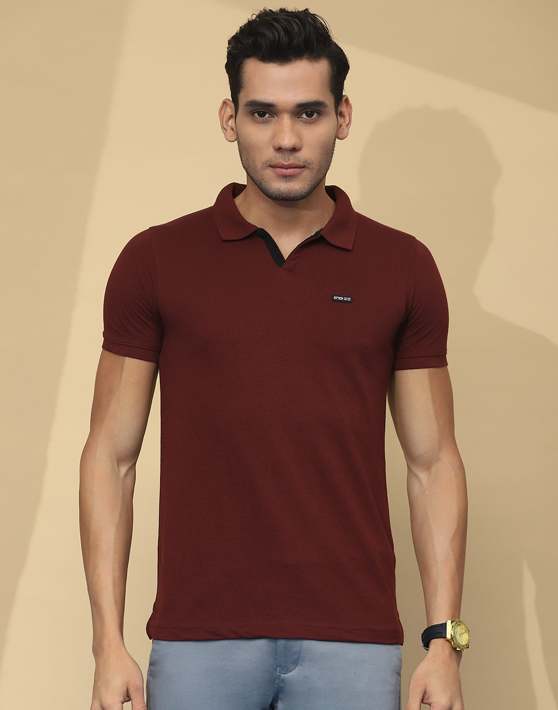 Men Maroon Solid Collar Half Sleeve T-Shirt