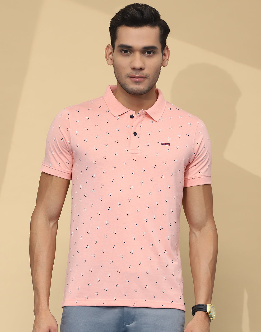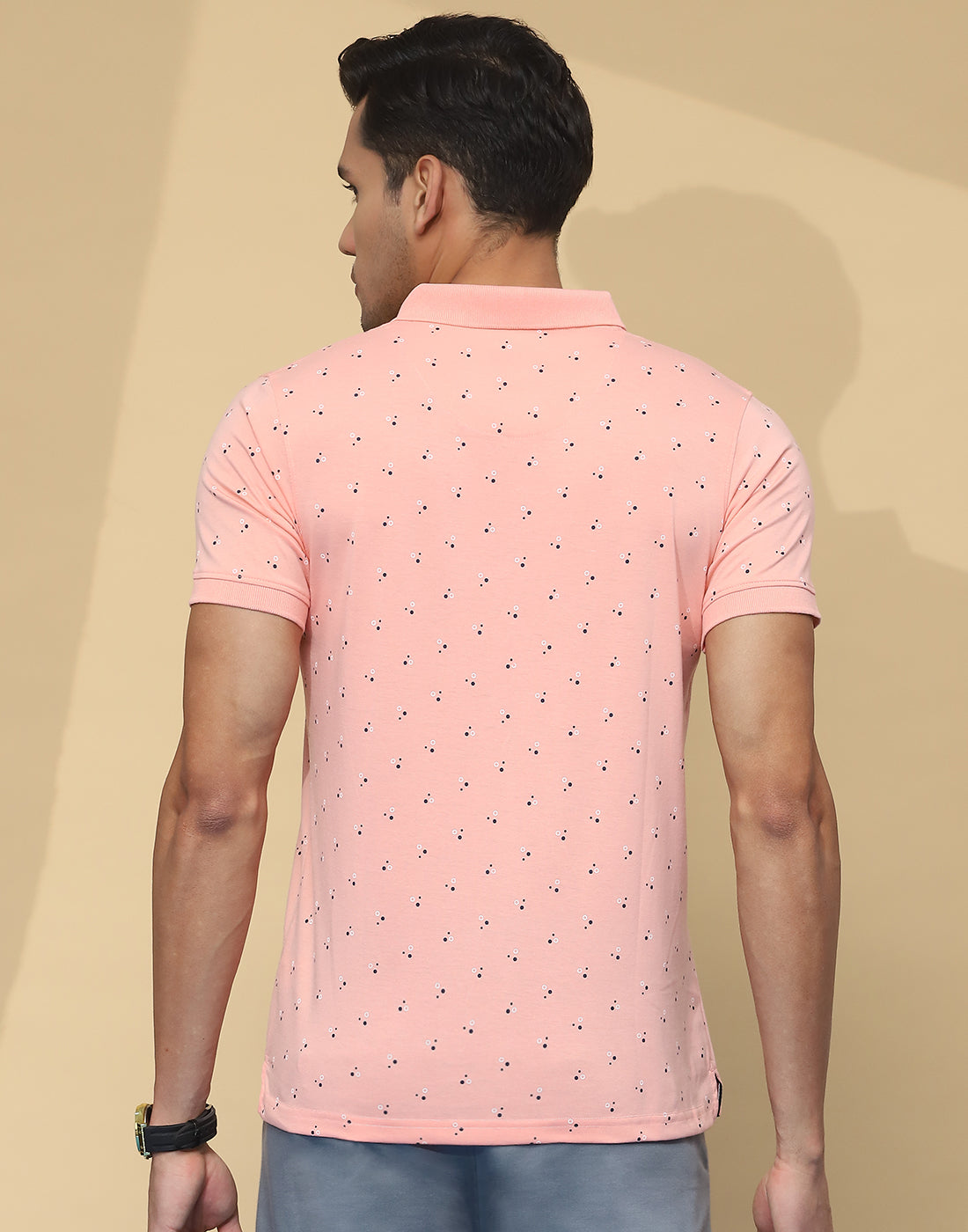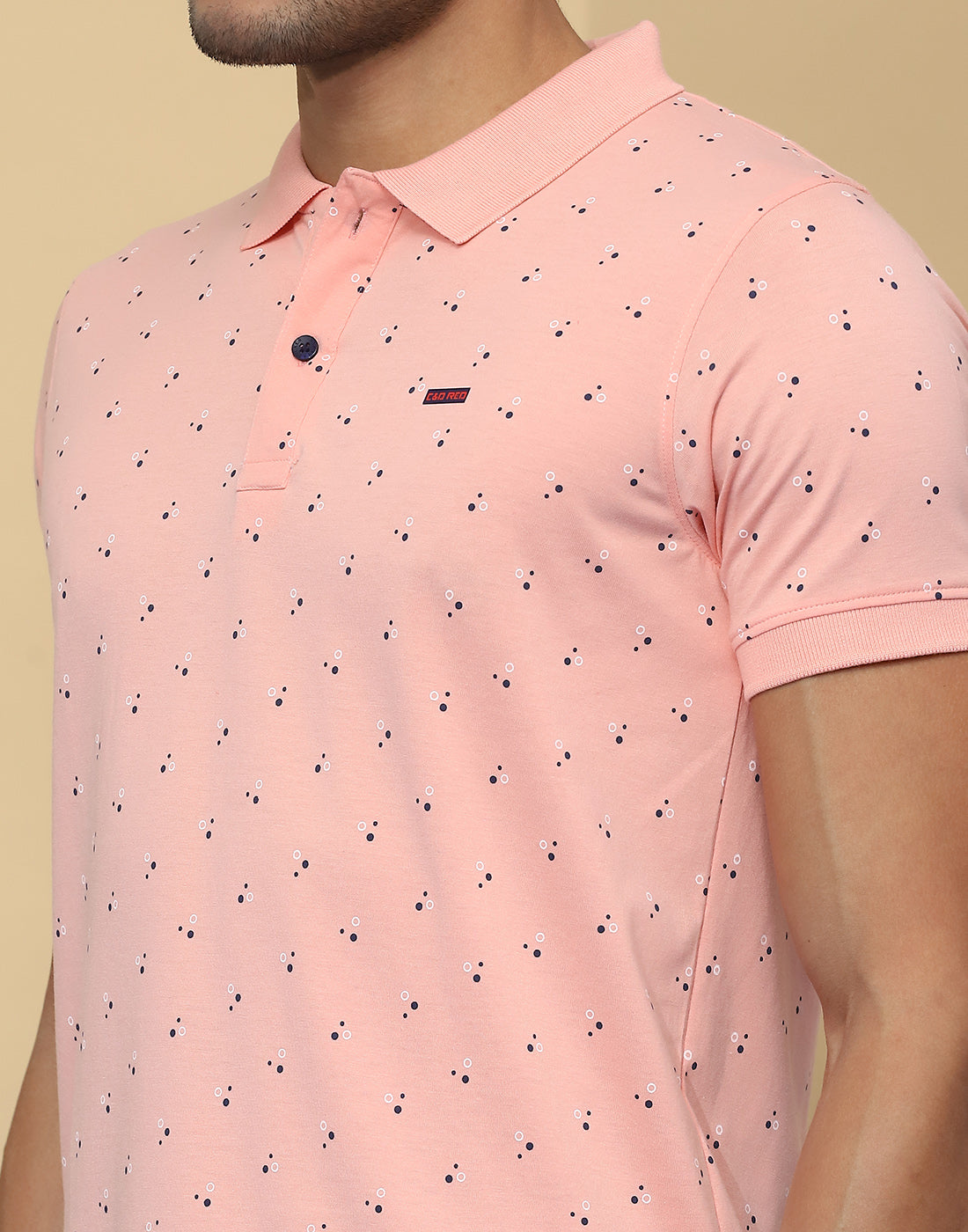 Men Peach Printed Collar Half Sleeve T-Shirt