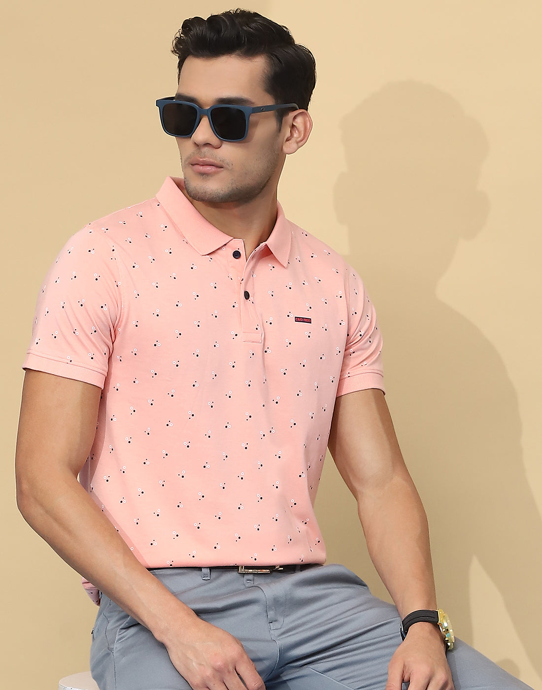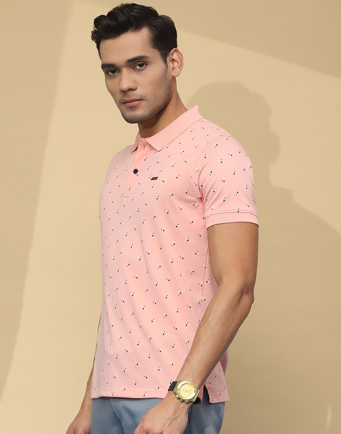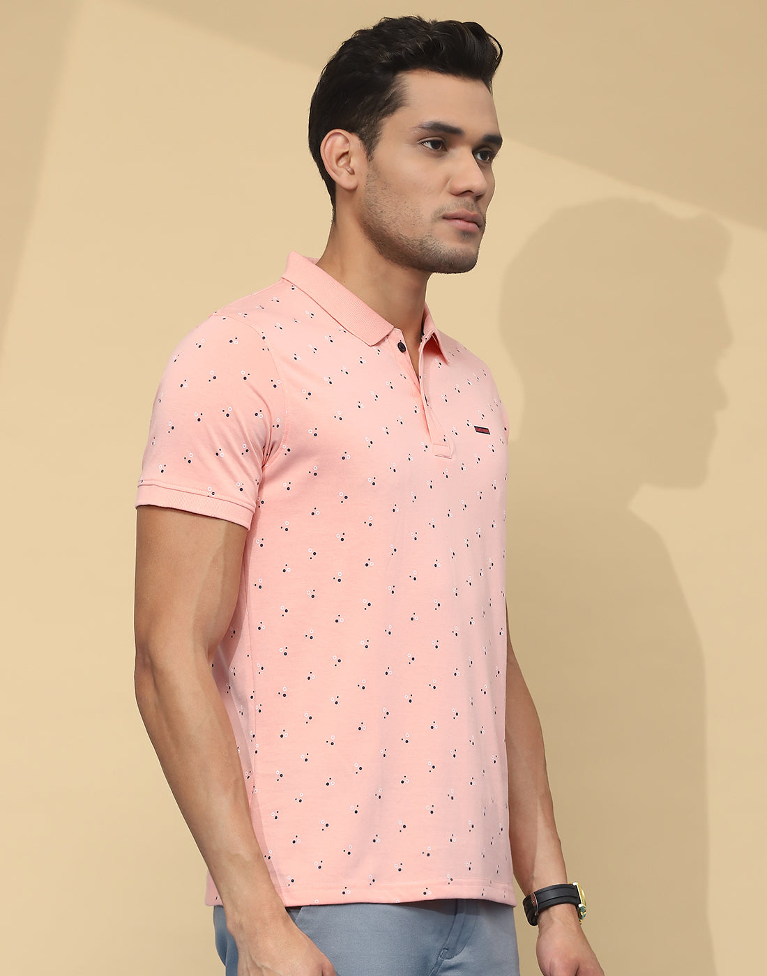 Men Peach Printed Collar Half Sleeve T-Shirt