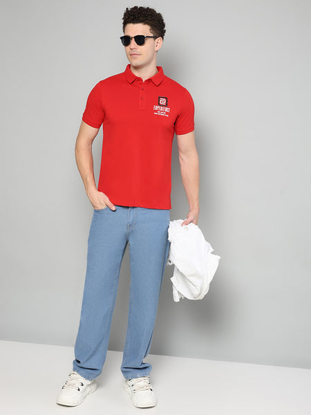 Men Red Printed Polo Collar Half Sleeve T-Shirt
