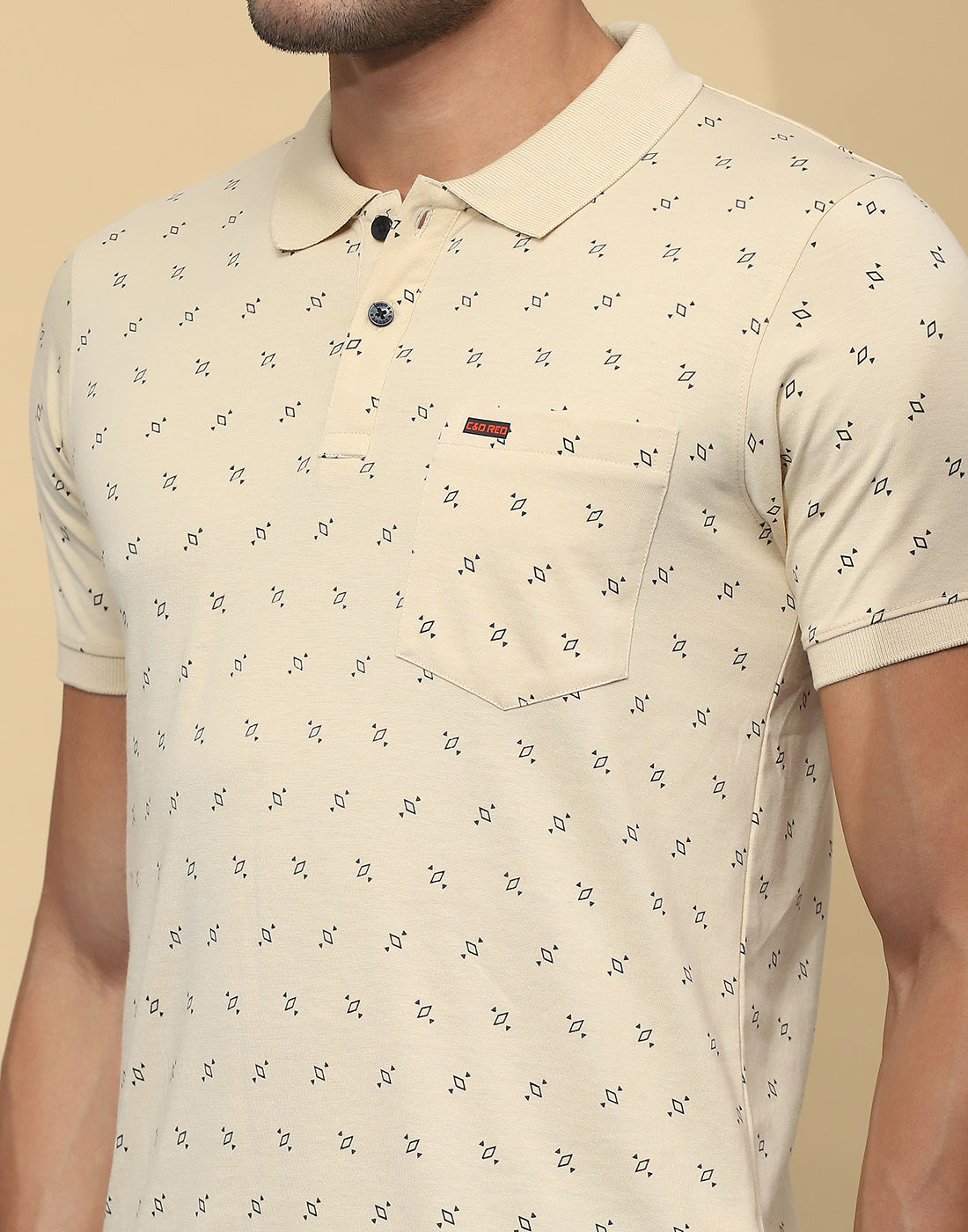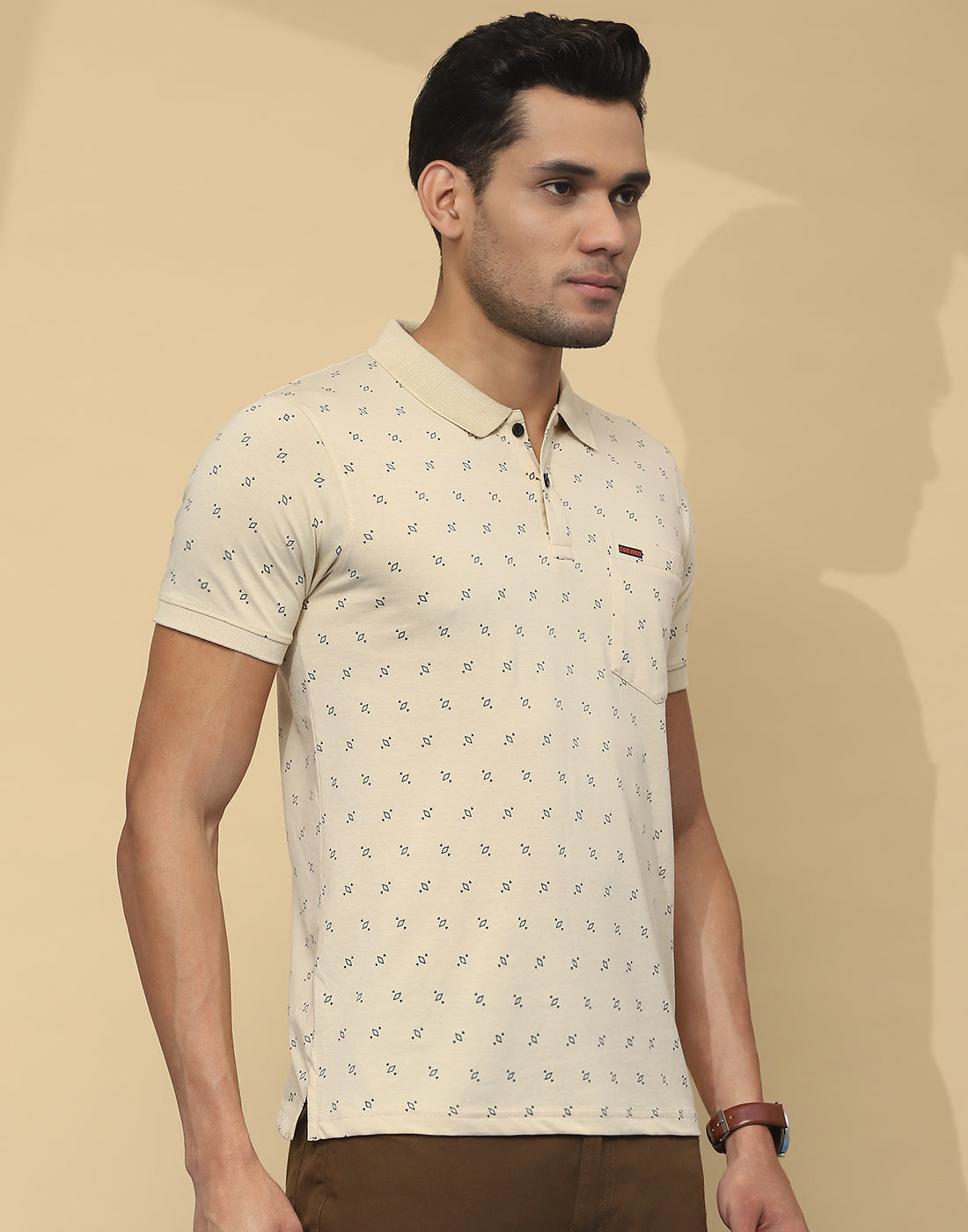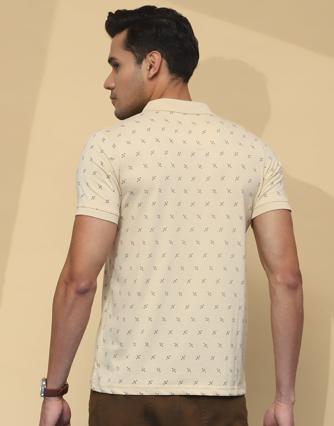 Men Beige Printed Collar Half Sleeve T-Shirt