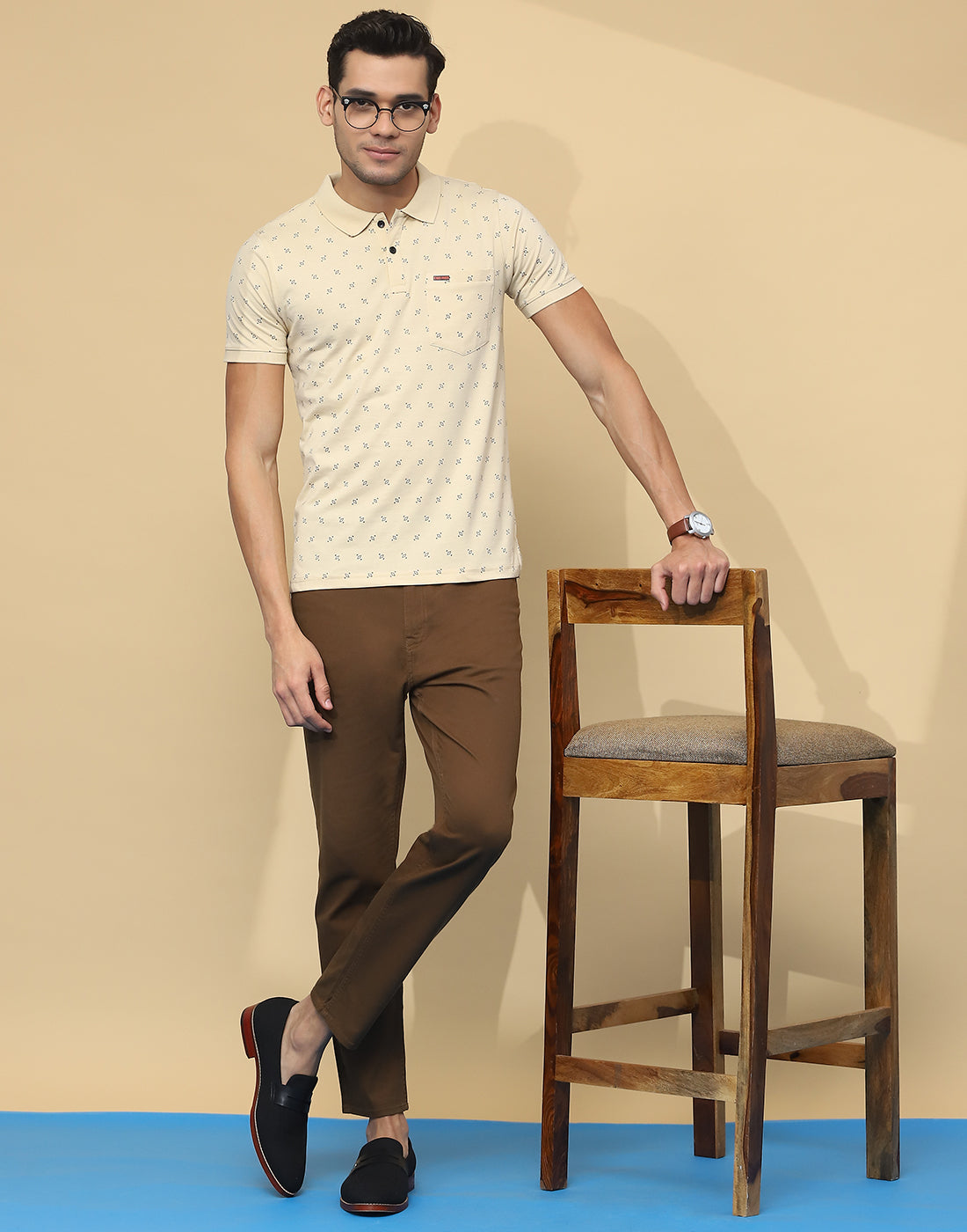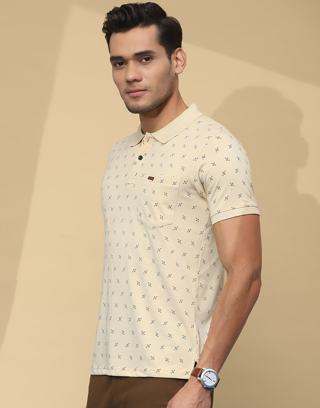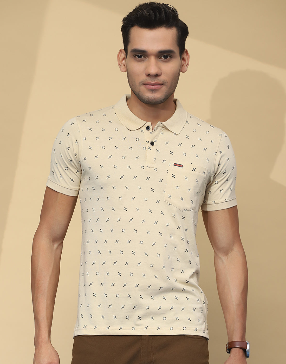 Men Beige Printed Collar Half Sleeve T-Shirt