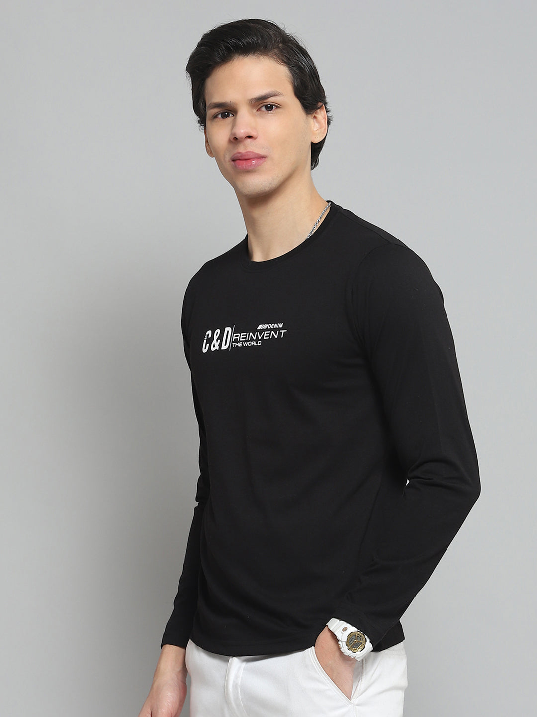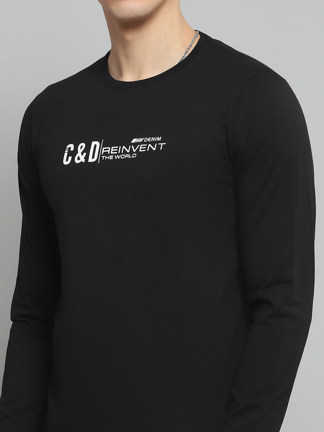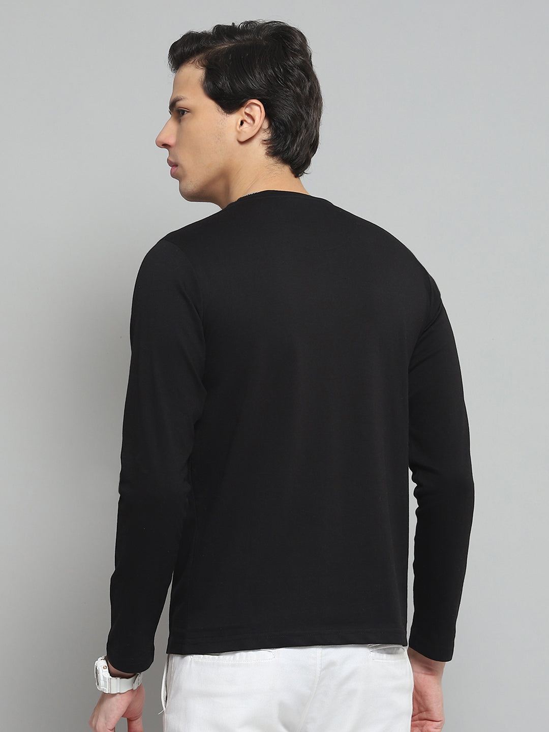 Men Black Printed V Neck Full Sleeve Winter T-Shirt