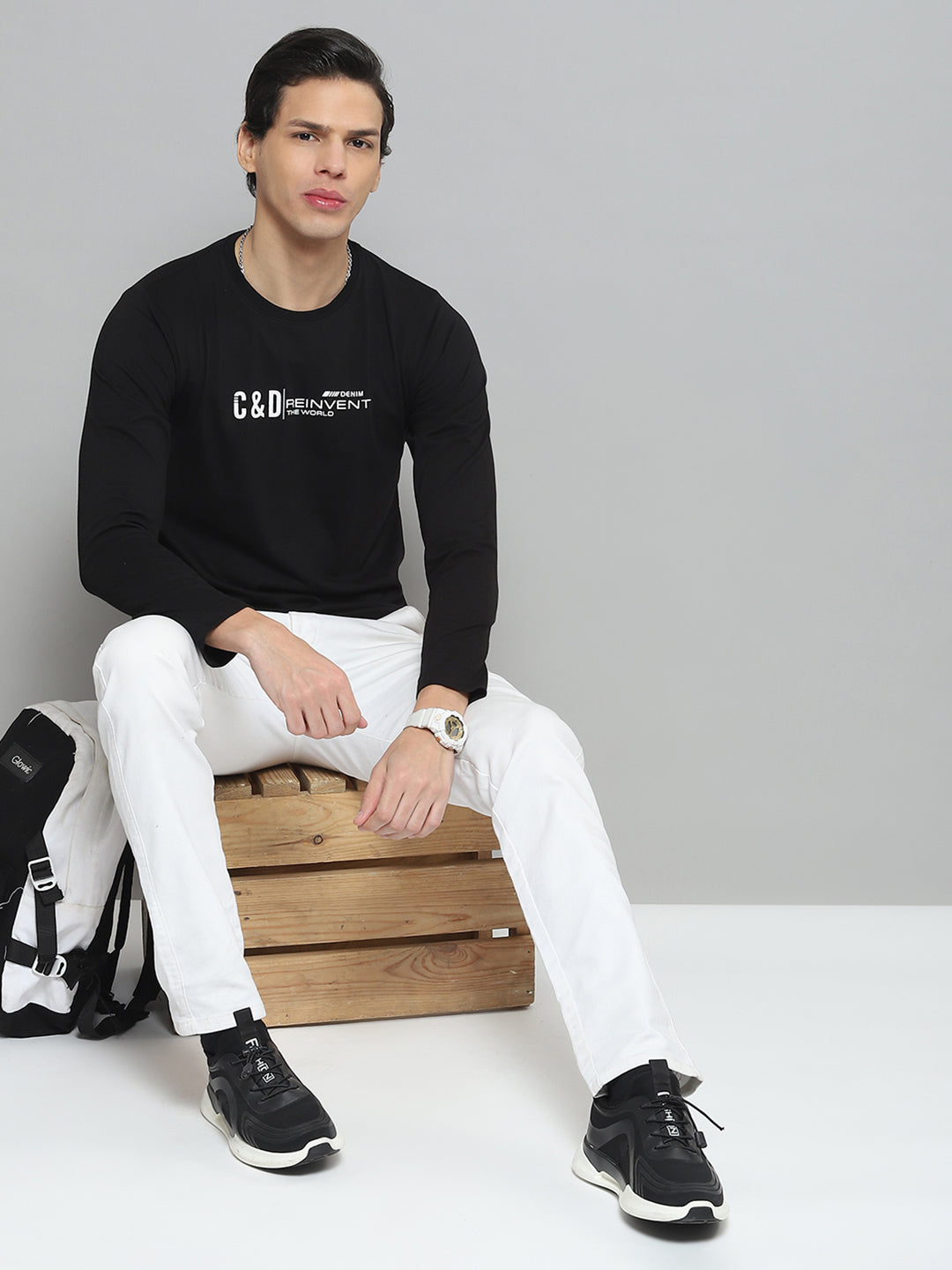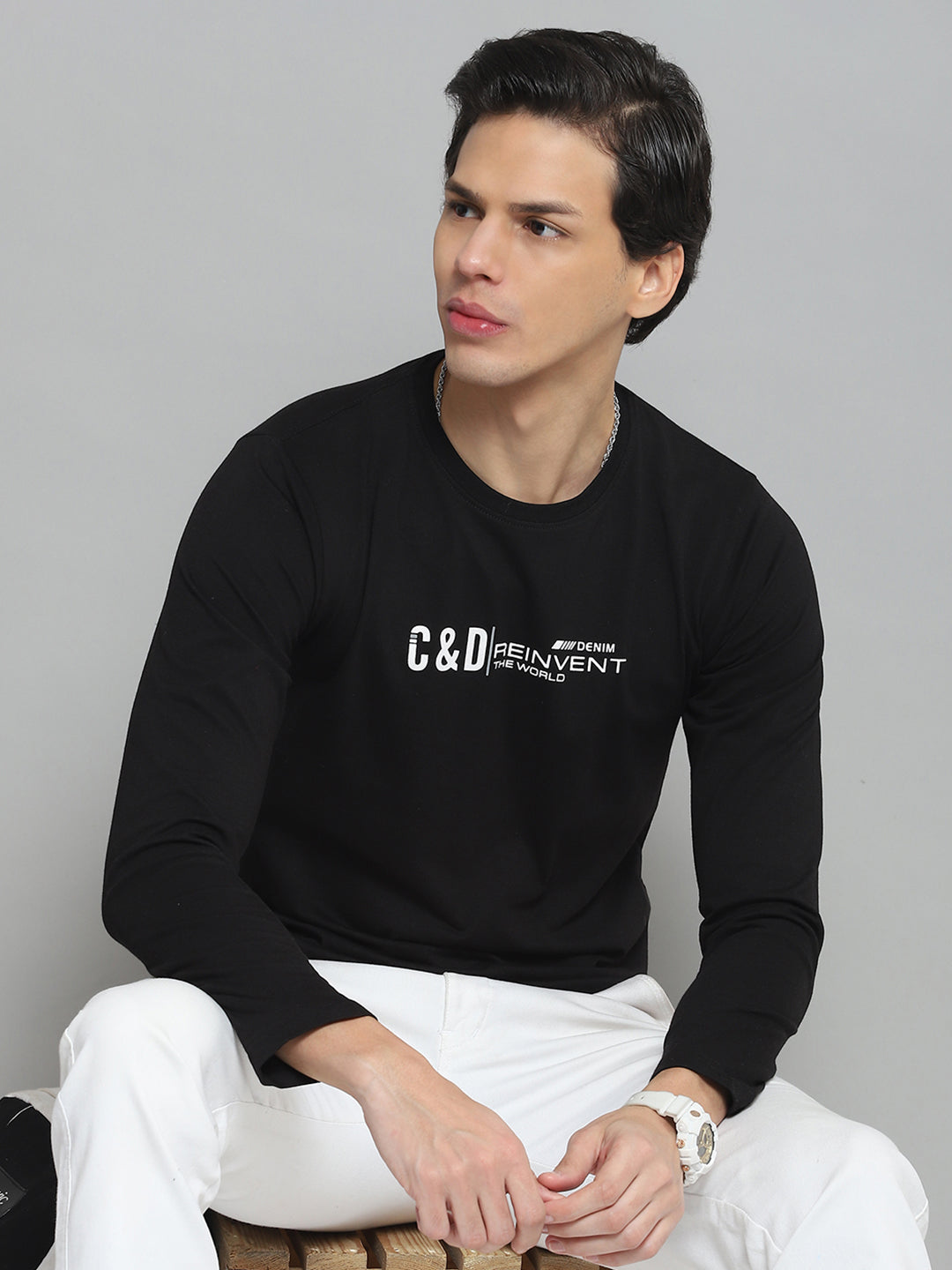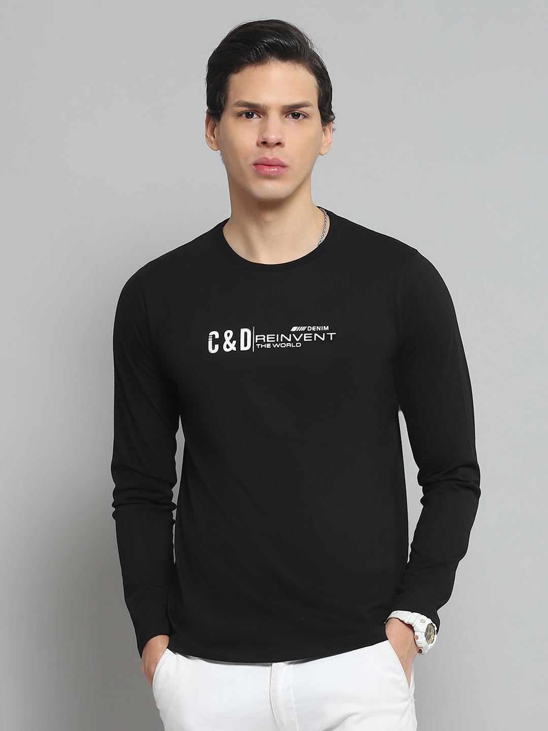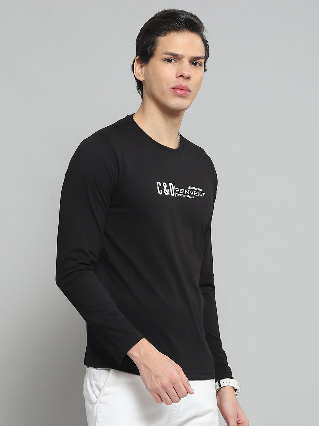 Men Black Printed V Neck Full Sleeve Winter T-Shirt
