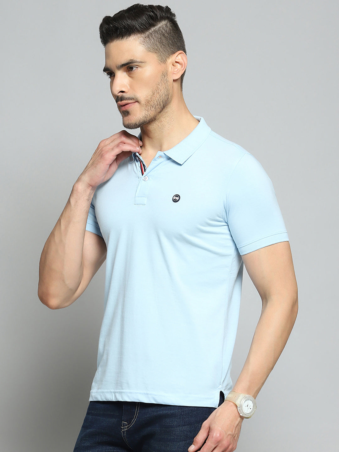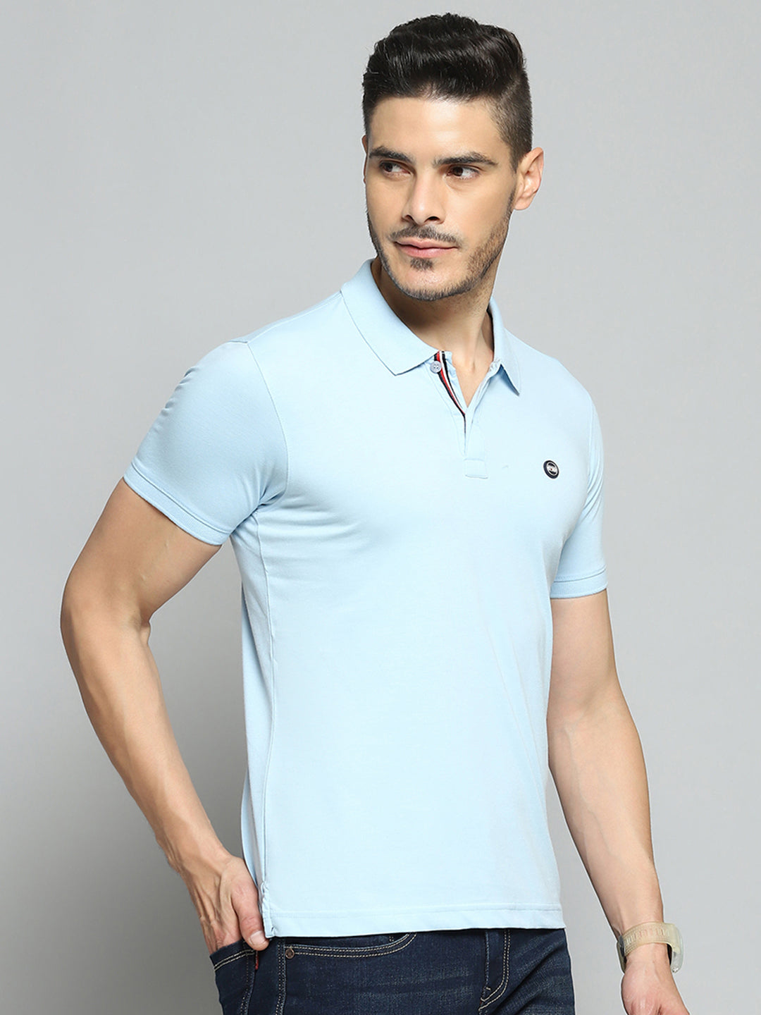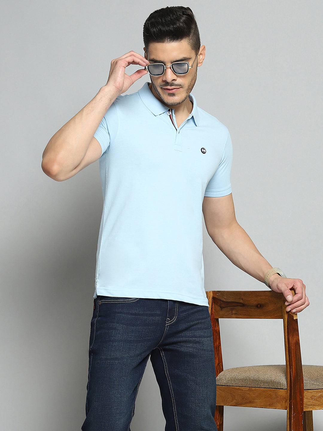 Men Sky Blue Solid Polo Collar Half Sleeve T-Shirt