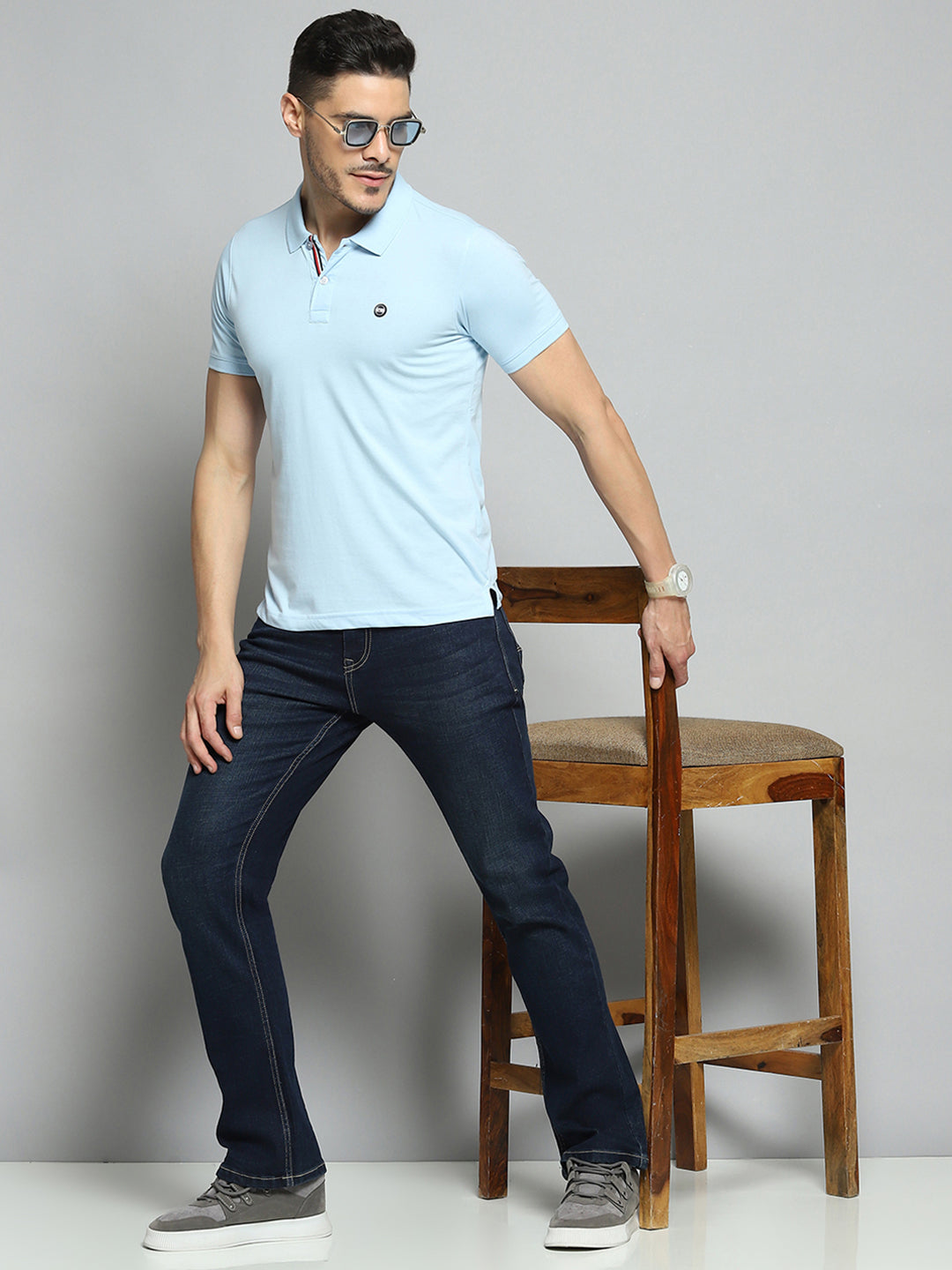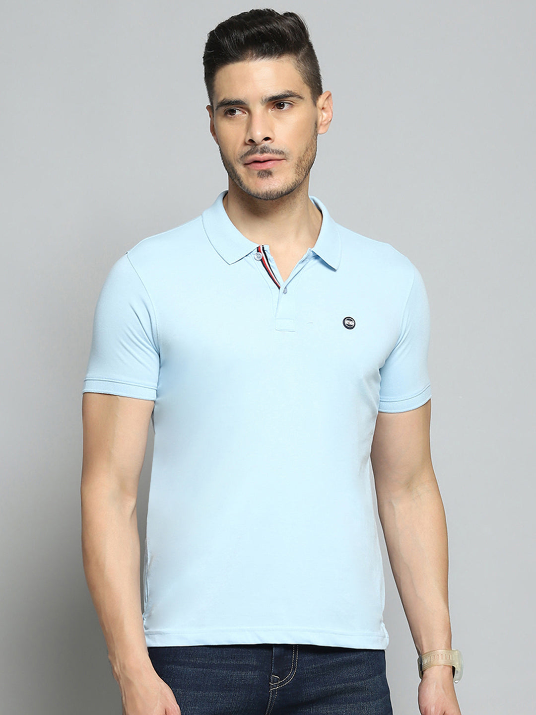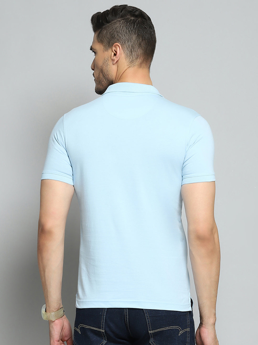 Men Sky Blue Solid Polo Collar Half Sleeve T-Shirt