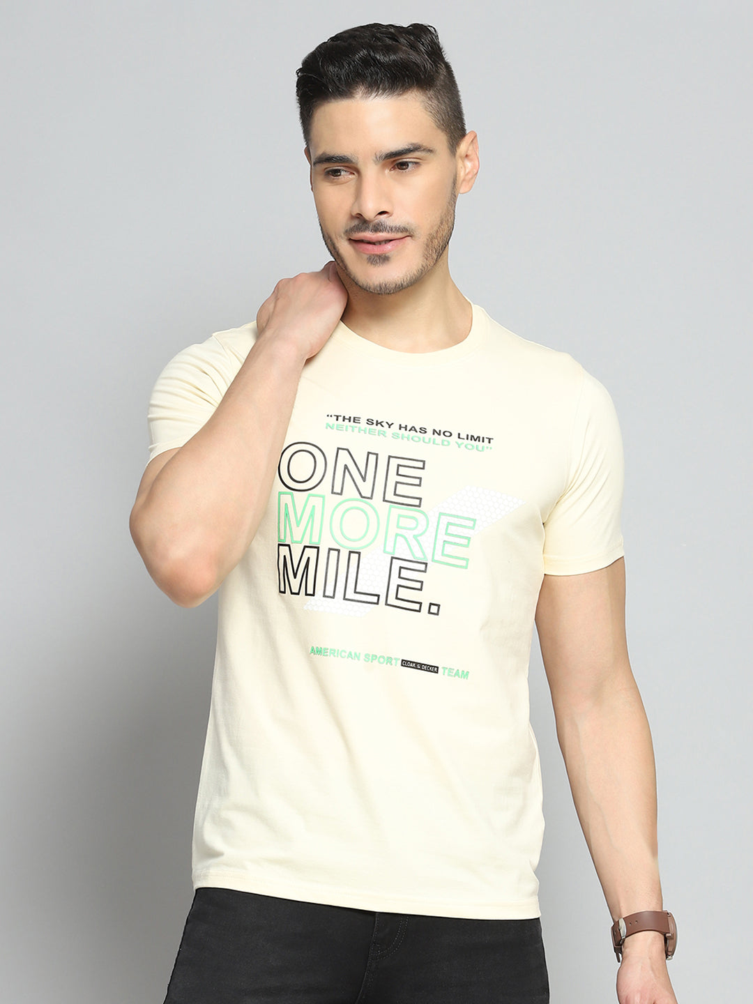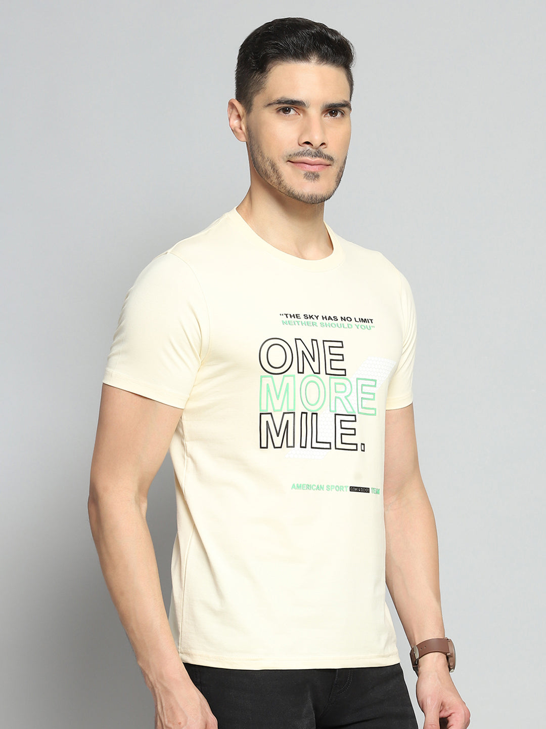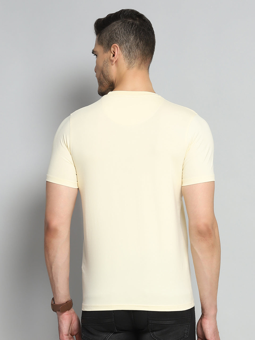 Men Beige Printed V Neck Half Sleeve T-Shirt