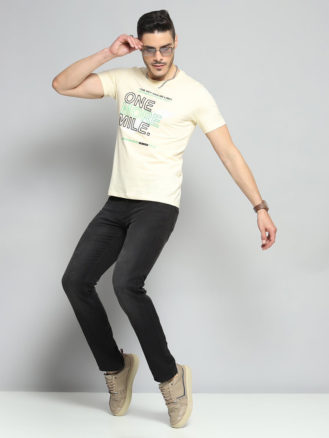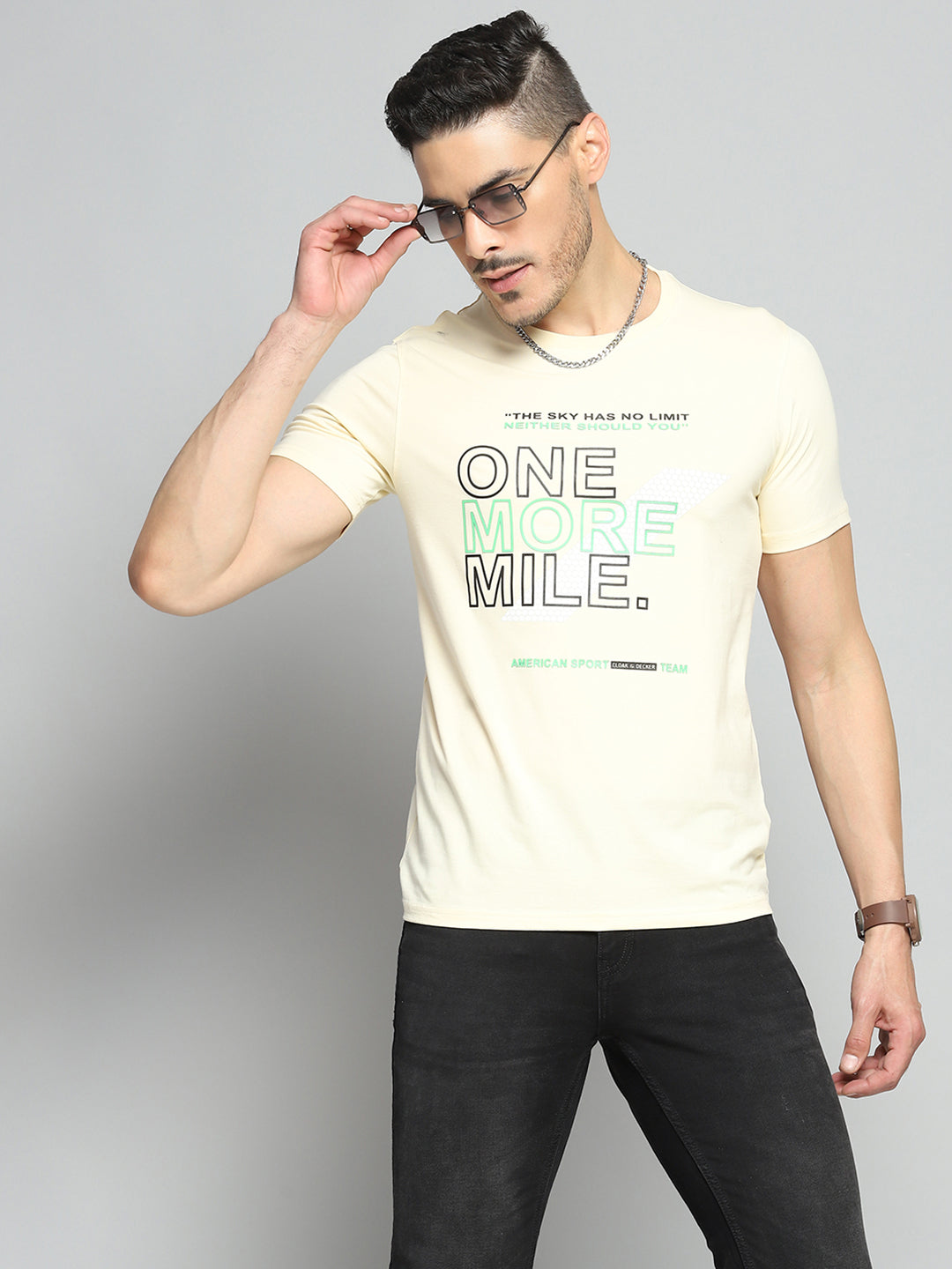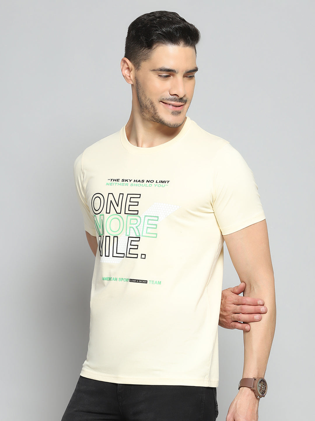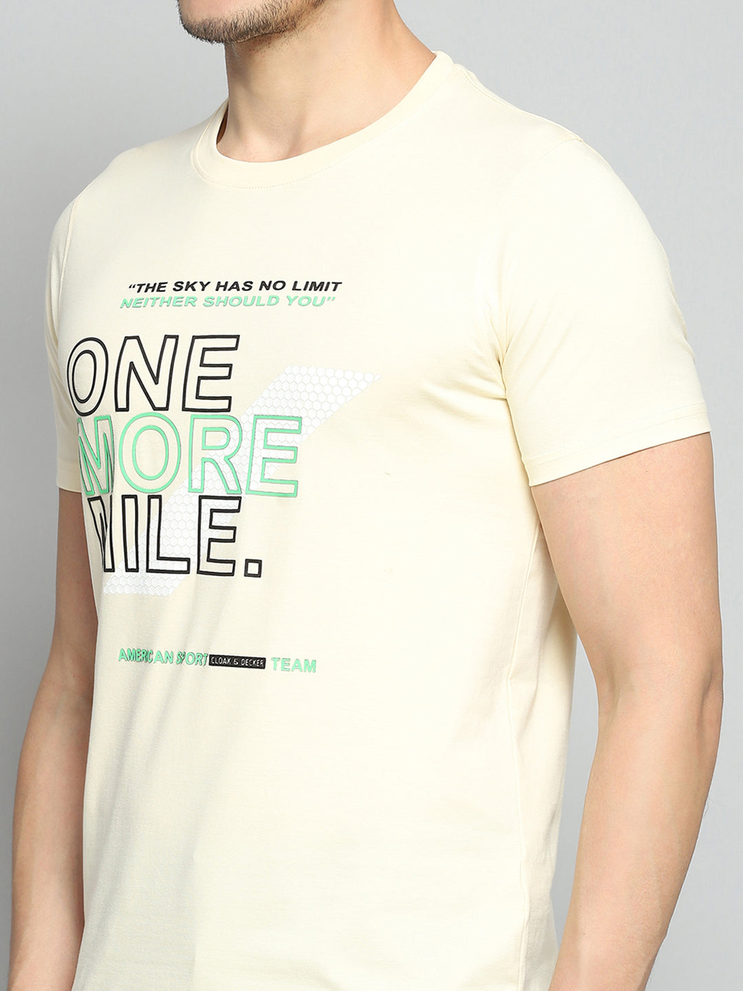 Men Beige Printed V Neck Half Sleeve T-Shirt
