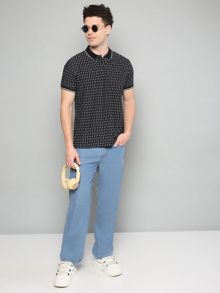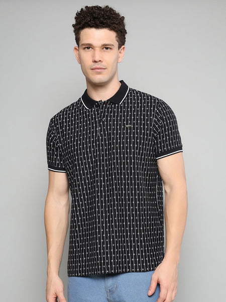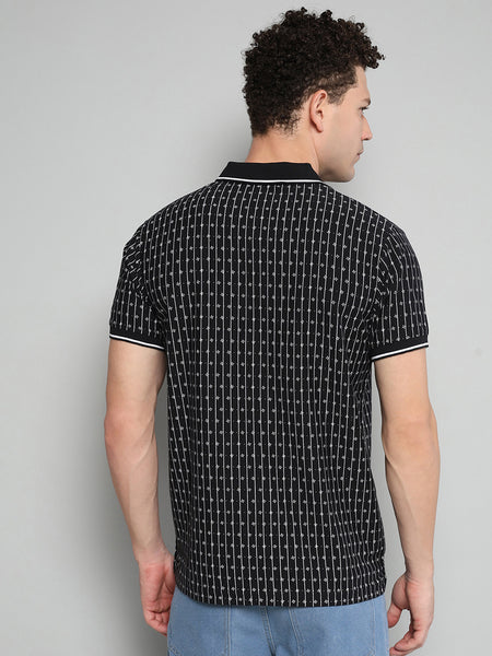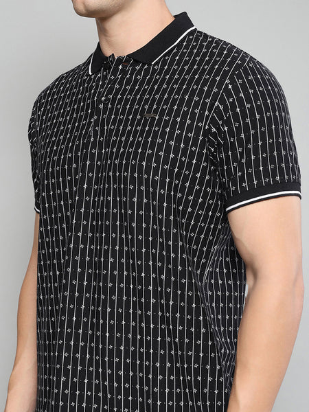 Men Black Printed Polo Collar Half Sleeve T-Shirt
