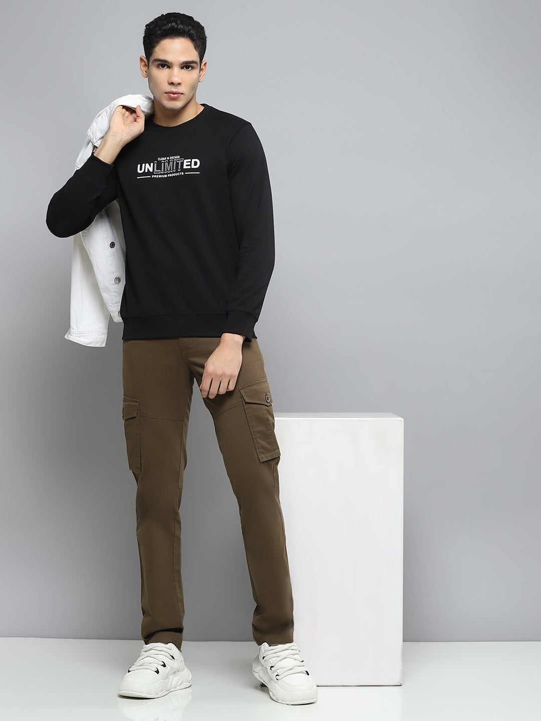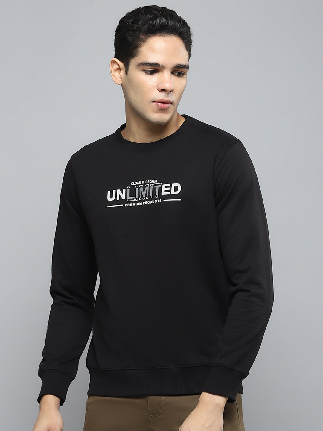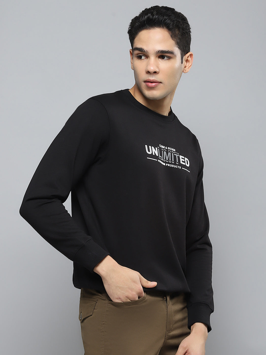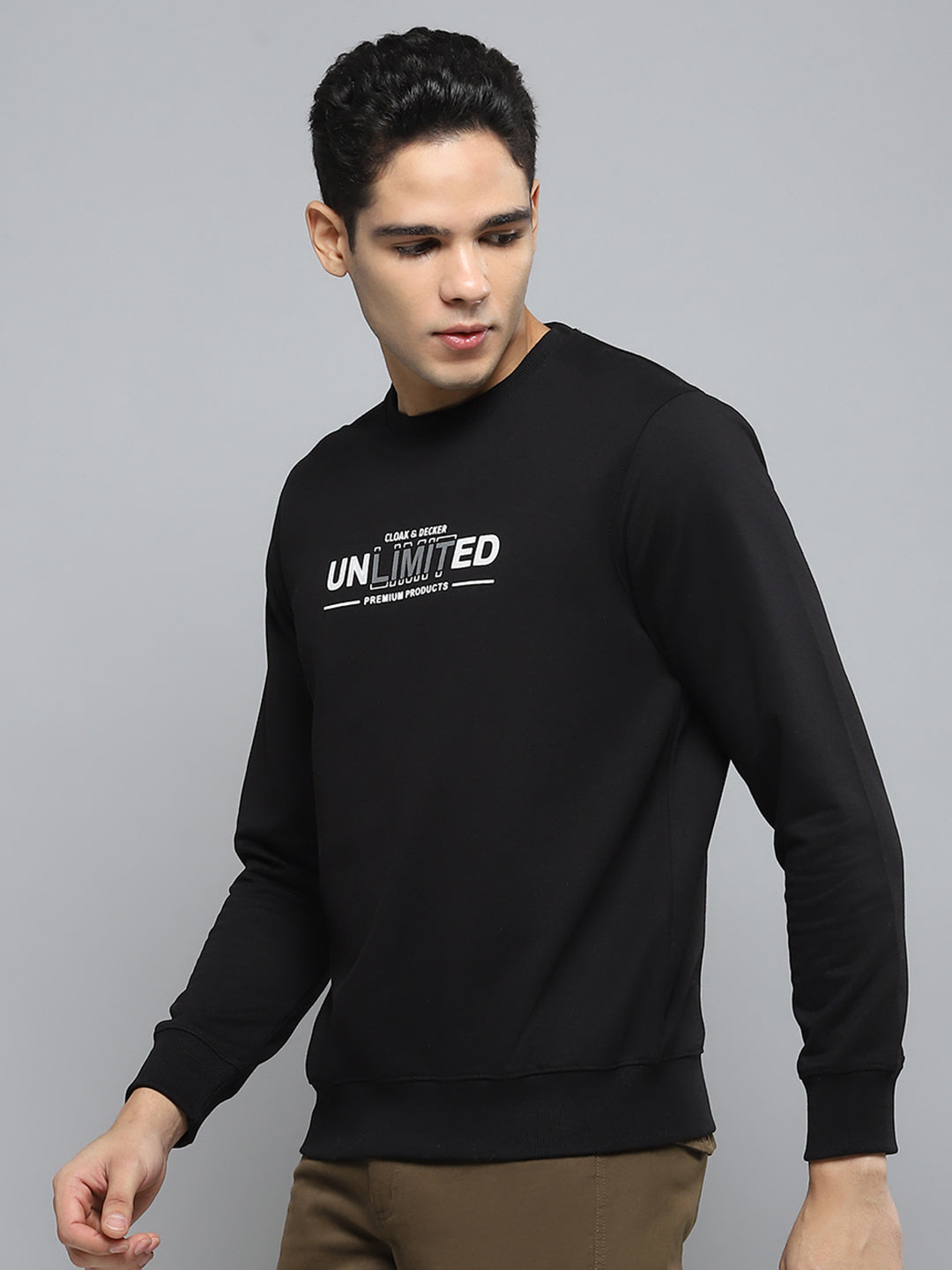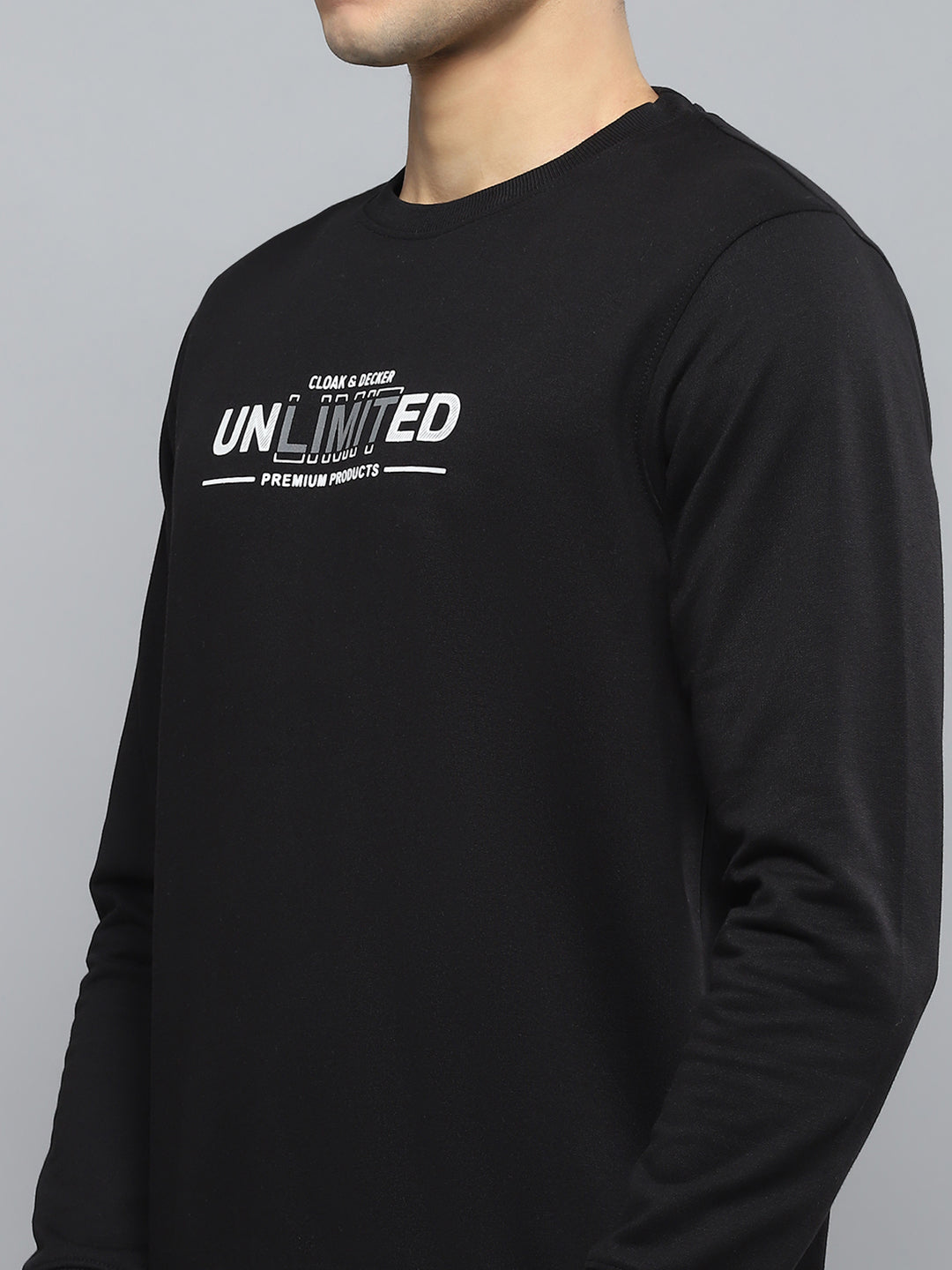 Men Black Printed Round Neck Full Sleeve Sweatshirt
